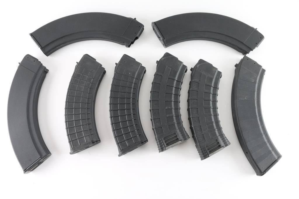 Four Bulgarian AK-47 7.62x39mm 40-Round Steel Lined Polymer Magazines, Four polymer 30-round AK-47 7.62x39mm AK-47 magazines, two Tapco, and Two unmarked. (8) Total. all in very good condition.