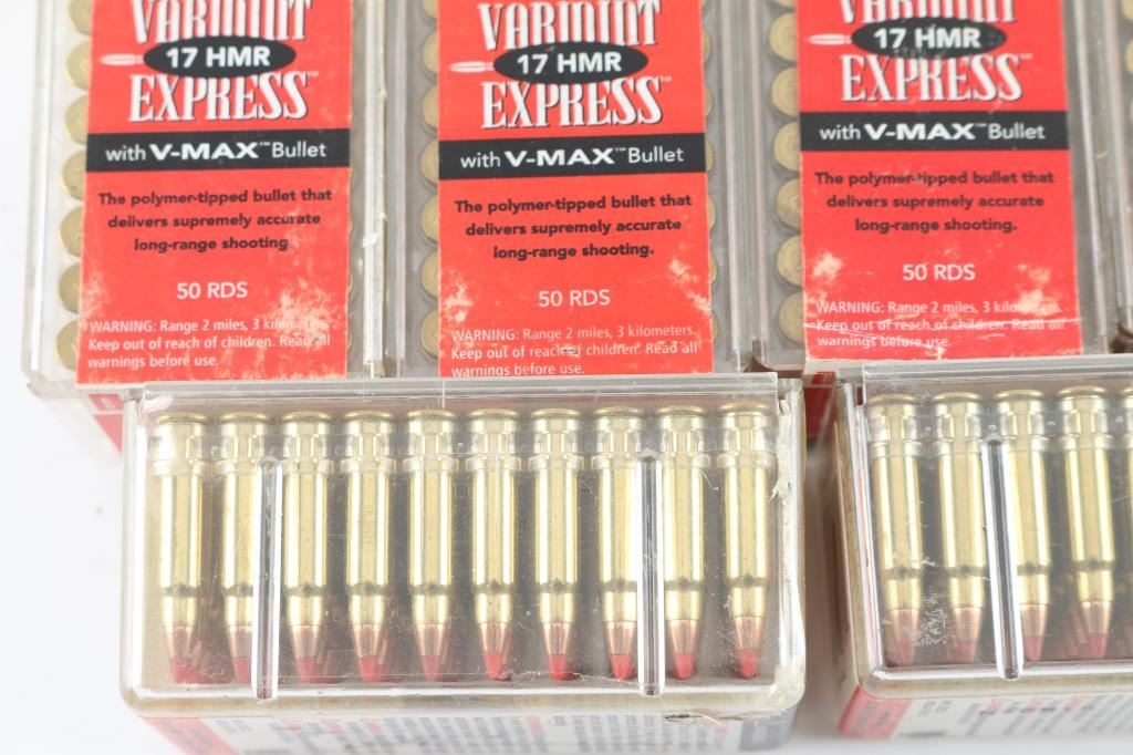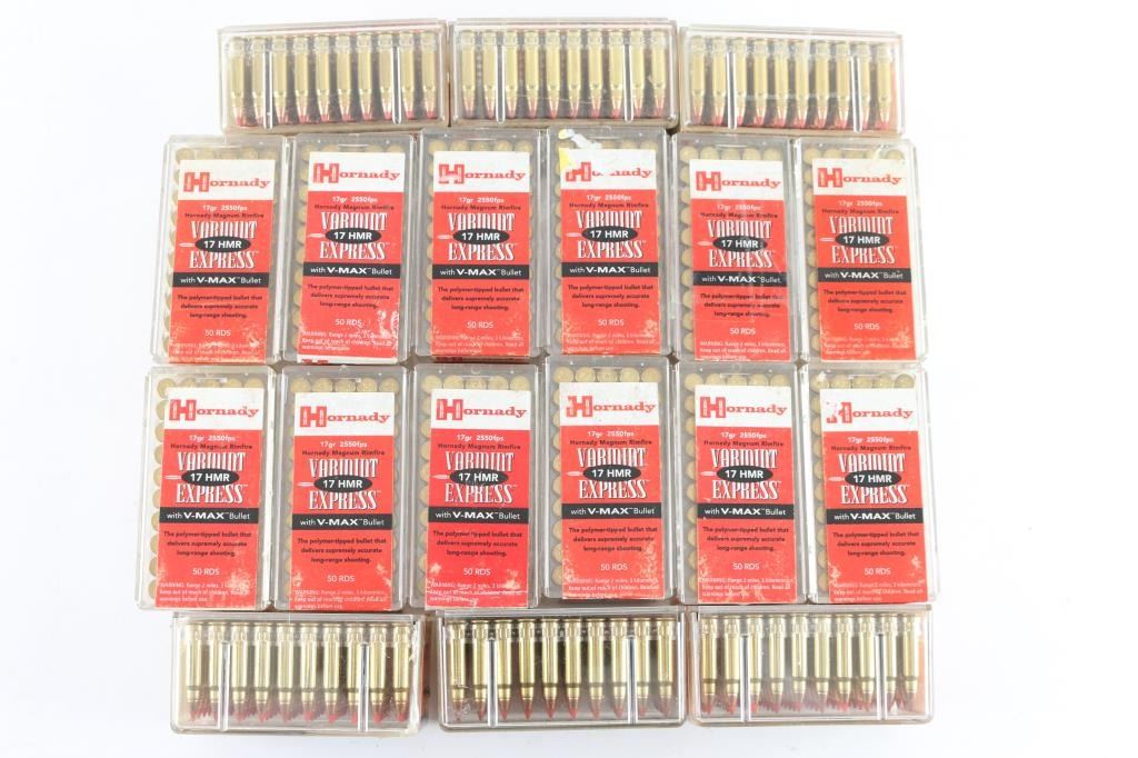 Approx. 950 rounds of new 17 HMR Ammunition by Hornady , 17 Gr. V-Max, in factory plastic containers.