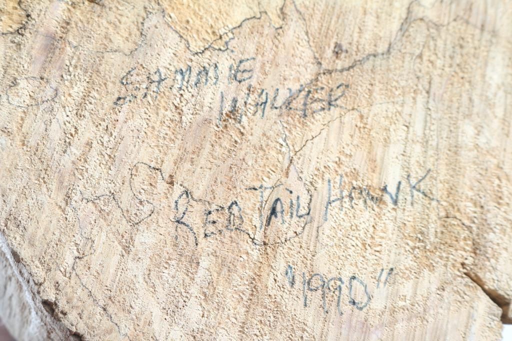 handsigned by master carver, Sammie Walker: Redtail Hawk - 1990, approx 27" tall x 7" dia.