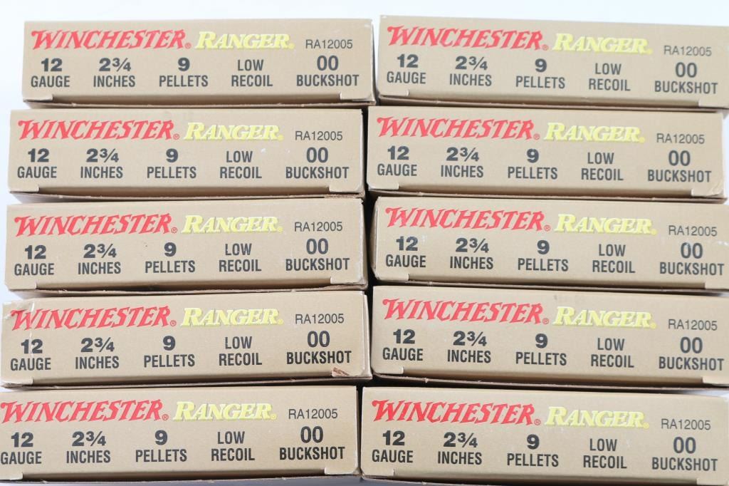 Approx. 150 rounds of Winchester 12 gauge low recoil 00 Buckshot, for 2 3/4" chamber. All new in factory boxes.