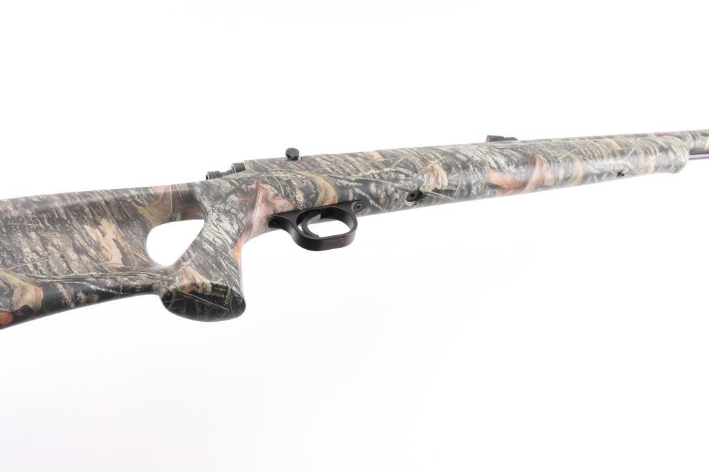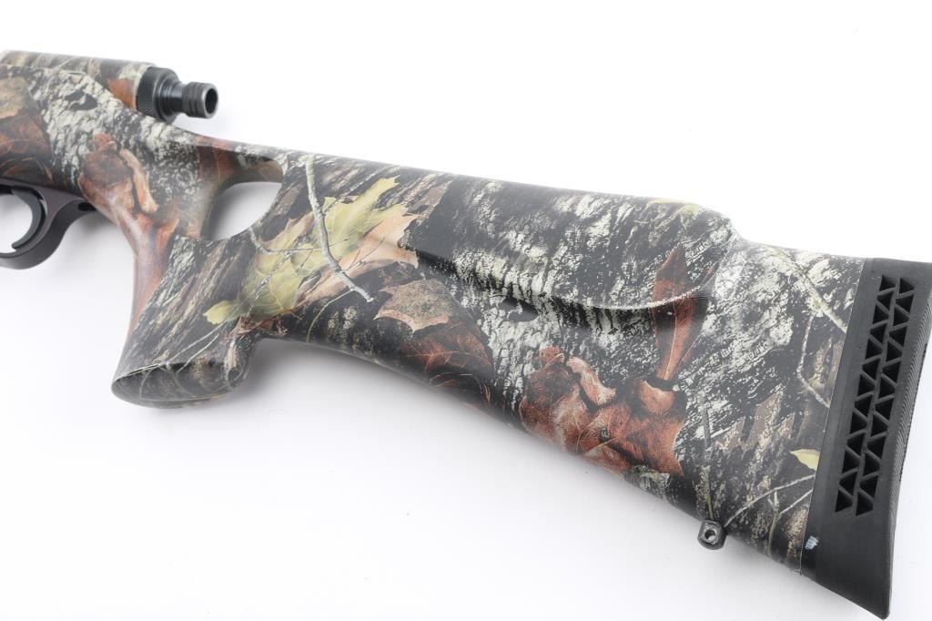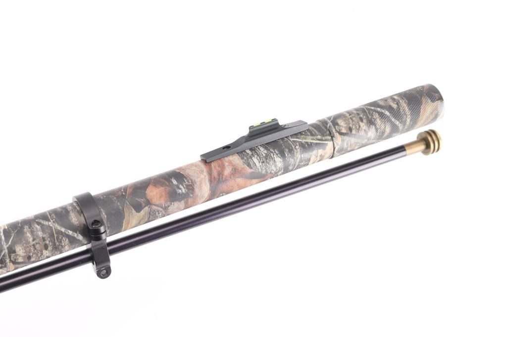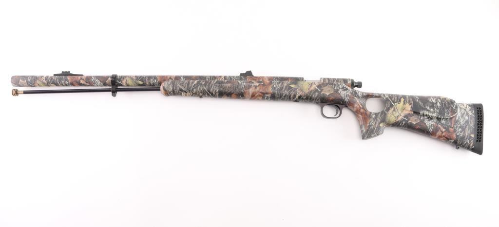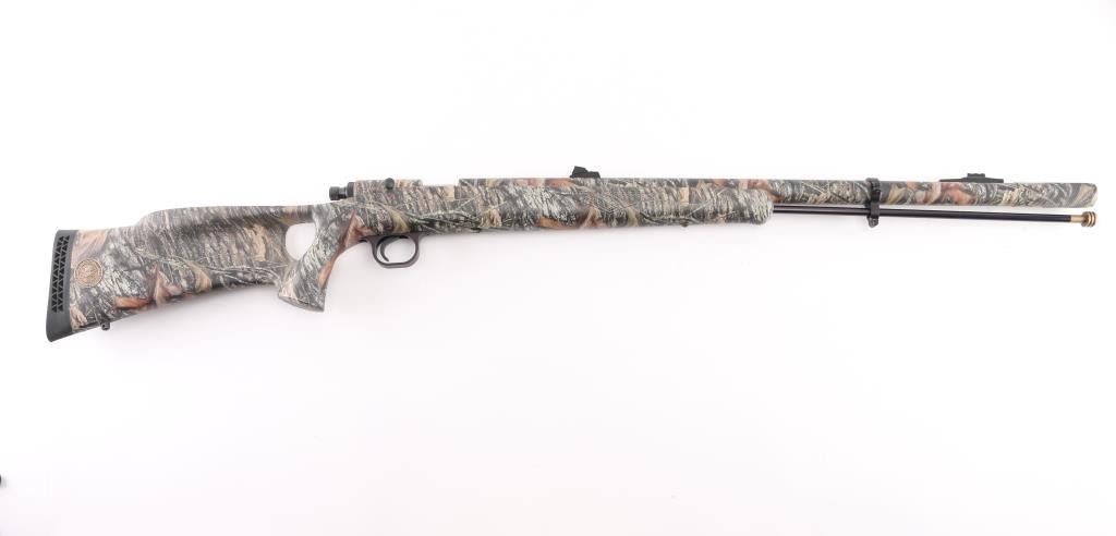 The TK2000 Muzzleloader is the most advanced black powder shotgun on the market, the TK2000 features an exclusive extra-full choke and a Realtree Xtra Green camo pattern. Designed for 40 yards and beyond, the choke allows 85% shot density in a 30" circle at 40 yards! Ultimate turkey hunting rifle. DynaTek Coating On Bore & Exterior Of The Barrel. Synthetic thumbhole stock, vented rubber recoil pad, red/green fiber optic sights, National Wild Turkey Federation medallion inletted in left buttstock. Rifle is in like new condition. NRA Condition-Excellent. Antique Firearm.