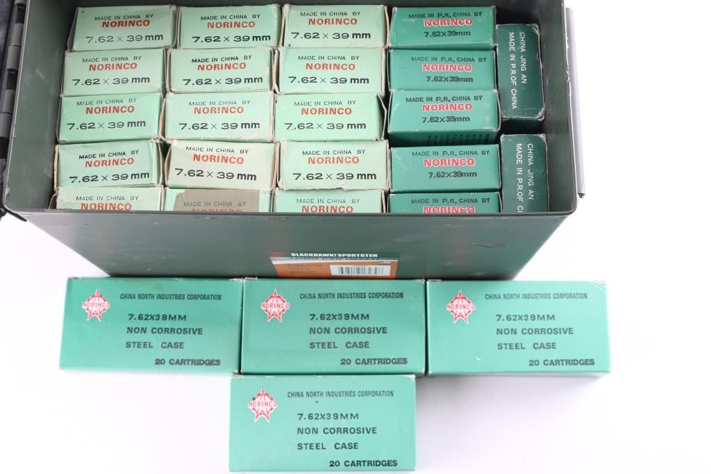 Approx. 520 of 7.62 X 39 ammunition, made by Norinco, Berdan primed, steel case and core.