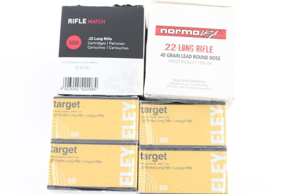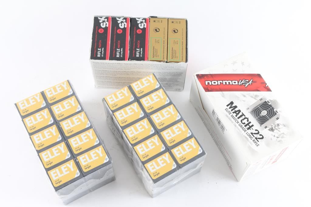 Approx. 2000 rounds of 22 LR ammunition. 500 rnds Norma match, 500 rns SK-Germany & 1000 rnds Eley-England.