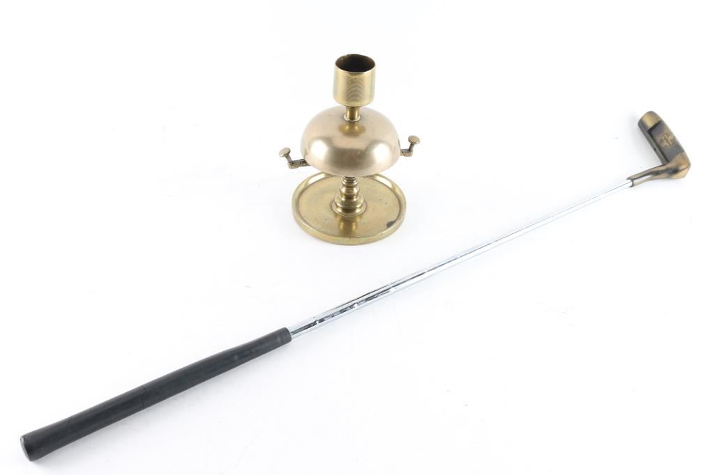 including a Santa Fe Railroad golf pride putter and a solid brass bell.