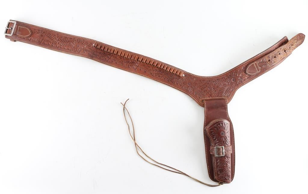 Made by Hunter, approximately 46" long, has 45 loops and fits a long barreled single action revolver.