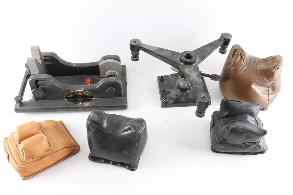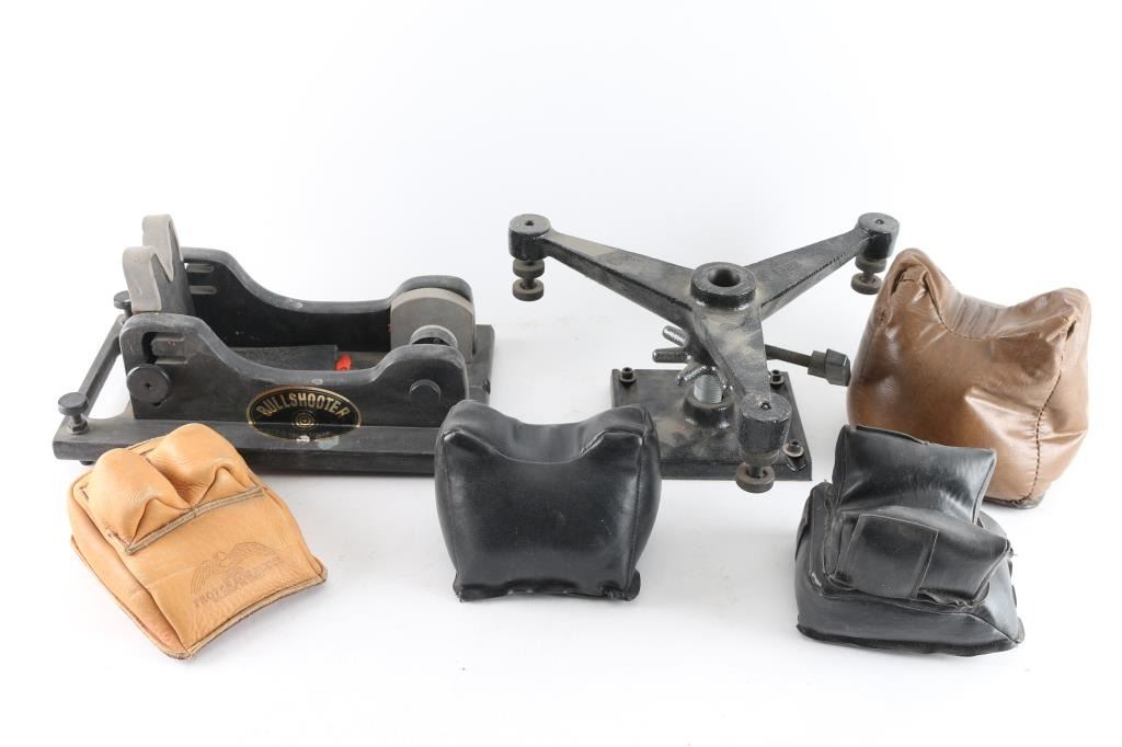 6 total. 2 pairs of bag rests, black and tan sets. 1 Bullshooter pistol rest & 1 Wichita Arms rest.