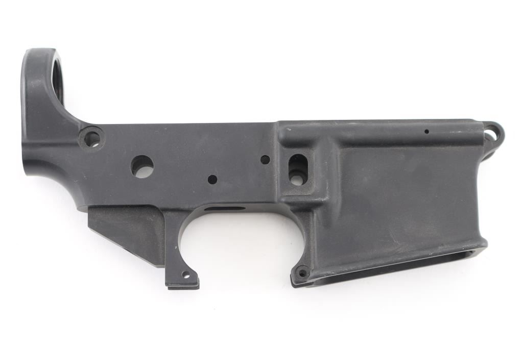 Stripped lower receiver for AR15 type firearms. Matte black anodized aluminum. "Multi Cal" marked. In very good to excellent condition, some handling marks and thinning on high spots. Appears never built into a firearm before. Condition is near NRA Excellent (Receiver Only) *** Modern Firearm ***