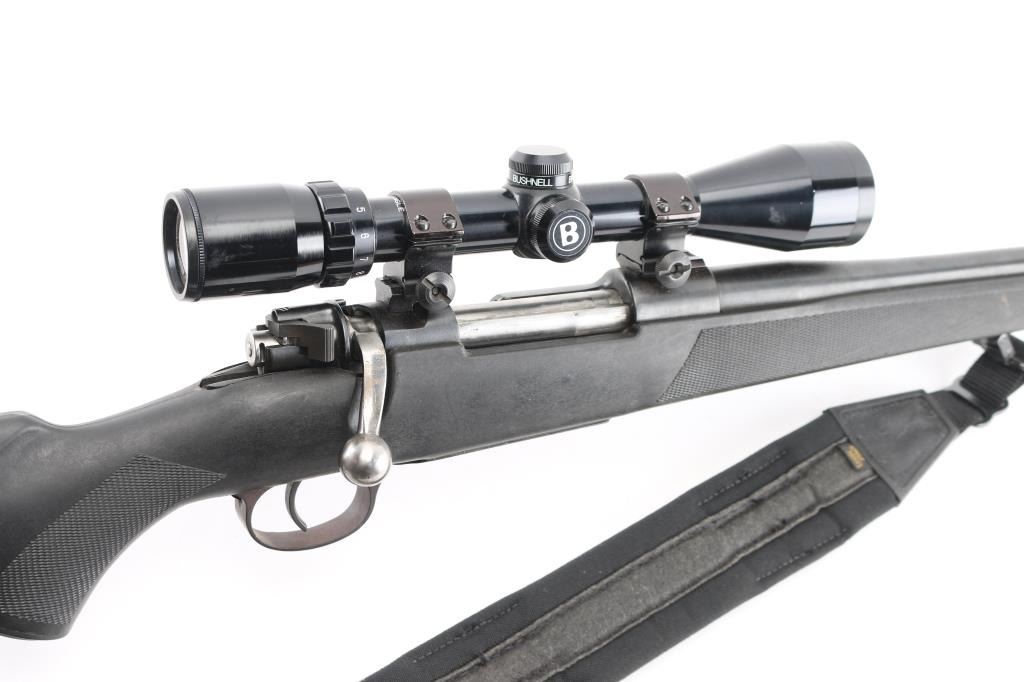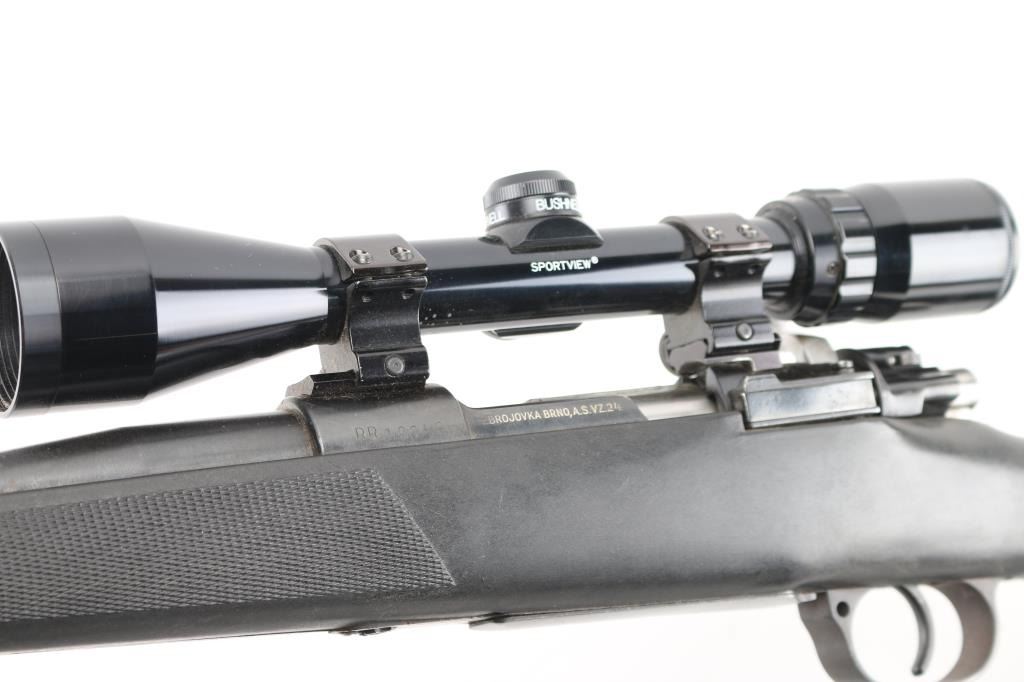 Sporterized Czech BRNO Mauser. Features blued finish, black polymer Butler Creek stock, 22" barrel, no iron sights,Weaver bases mounting a Bushnell Sportview 3-9x scope, bent & swept bolt handle, side swing safety fitted to bolt shroud. Stock has checkered panels, sling studs, solid rubber butt pad, right hand cheek piece. Bore is very good condition. Retains 90% re-blued finish. Stock is very good. Scope has clear view. Includes sling with cartridge loops on shoulder pad area. Condition is NRA Very Good as sporterized *** C&R Firearm ***