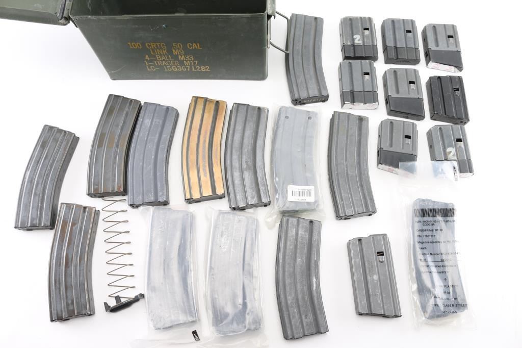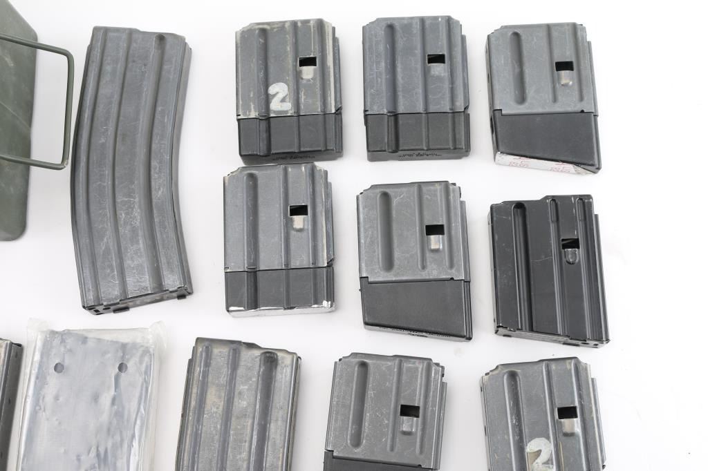 mix of USGI and commercially made USGI type. Total of (13) 30 rd, one 20 rd, eight 5 or 10 round mags with polymer extension bases.