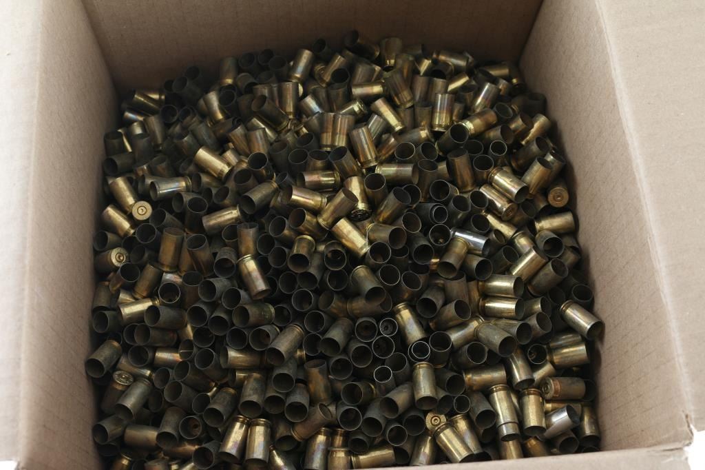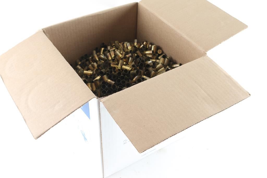 Approx. 50 Lbs. of 45 ACP spent brass, in cardboard box.