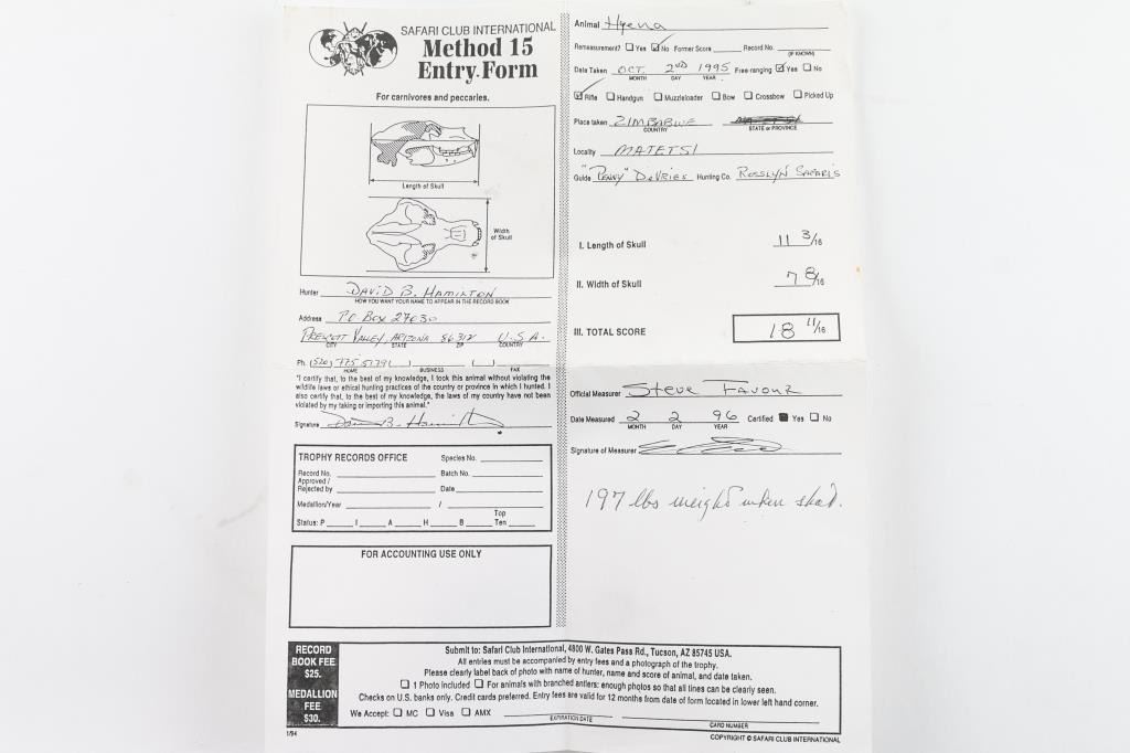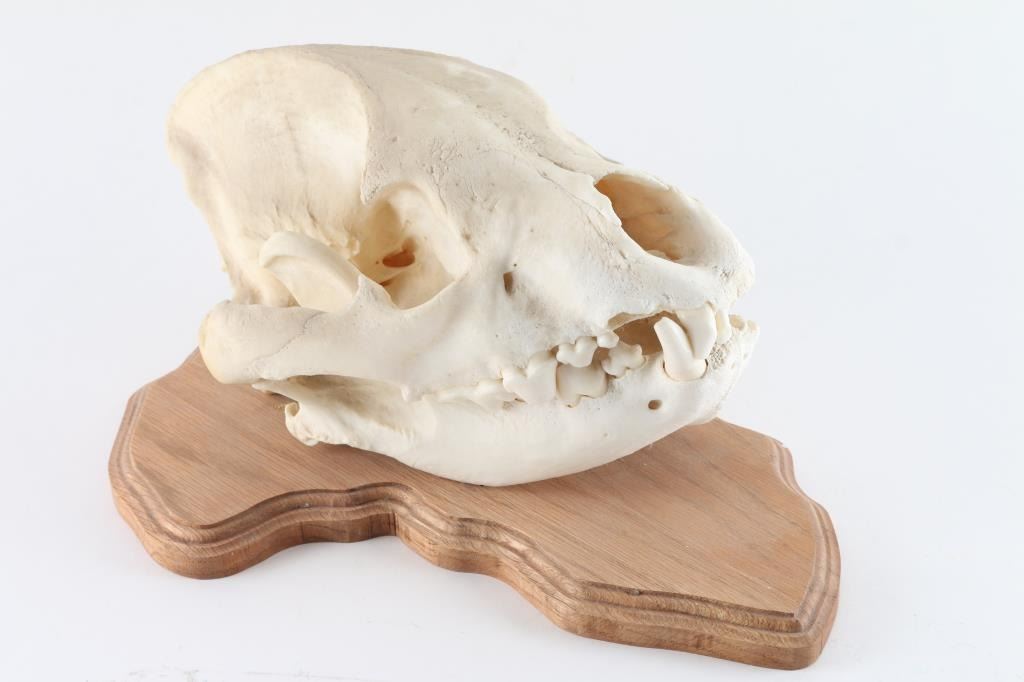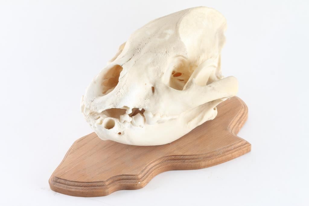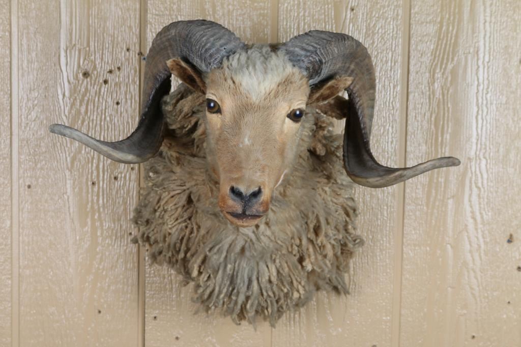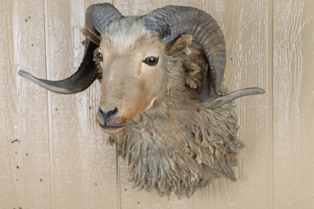 including a Hawaiian sheep, (23" spread, in fair condition) and a hyena skull mount.
