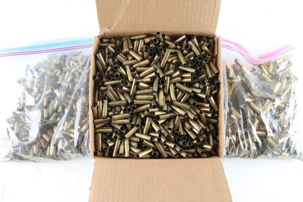 Approx. 17 Lbs. of spent 30 Carbine brass shells, approx. 5 Lbs of spent 9mm brass shells & approx. 5 Lbs of spent 38 Special brass shells.