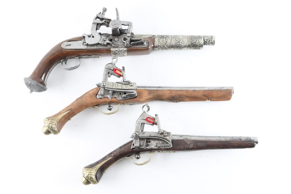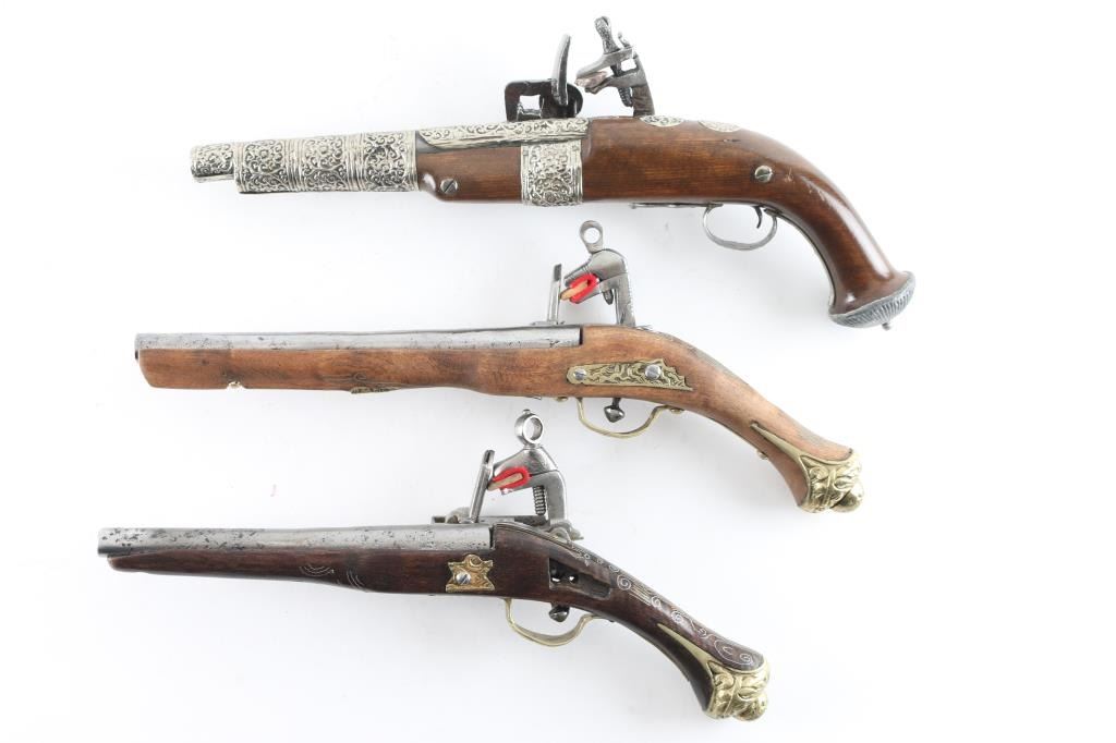 Lot 1755 Lot of Three Replica Flintlock Pistols