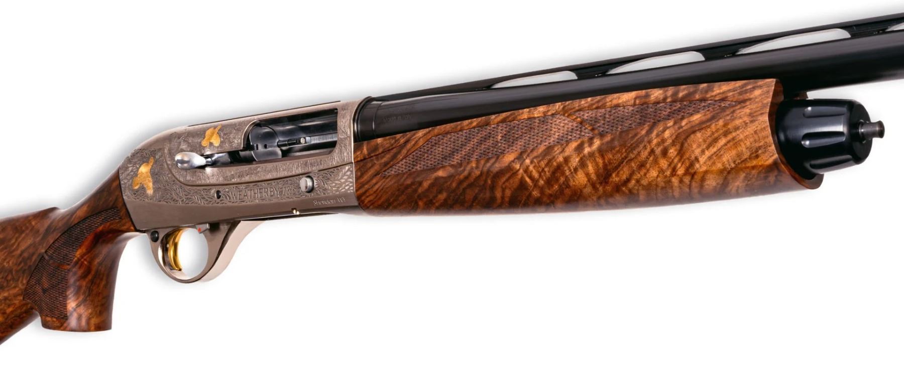 The Weatherby 18i Limited 20 ga shotgun is a high-end Weatherby shotgun featuring a hand-polished receiver with custom engraving done by Italian artist Bottega Incisioni di Cesare Giovanelli. The engraving includes real 24-karat gold inlays and accents, bringing amazing craftsmanship to the Weatherby lineup. With an exhibition-grade walnut stock that is unique to each-and-every shotgun, the walnut is sure to catch your eye. Built on Weatherby’s proven inertia recoil reloading system and set up on the crio plus choke system, the 18i lineup of shotguns are endurance-tested and field-proven by Weatherby. Crafted by some of the best Italian gunmakers in the world, this design is available in limited quantities.