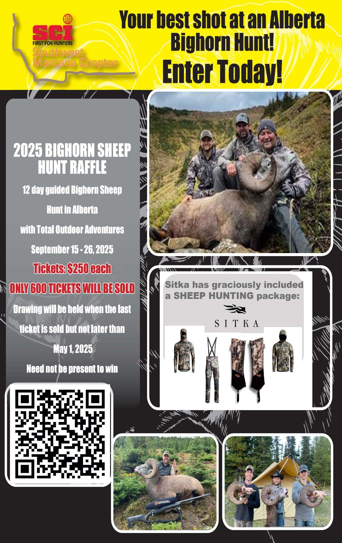 Lot 1 2025 ALBERTA BIGHORN SHEEP HUNT RAFFLE AND SITKA SHEEP HUNTING PACKAGE