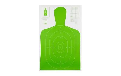 Action Target, B-27E High Visibility Target, Fluorescent Green, Silhouette Cut Off Below Ring 7, 23"x35", 100 Per Box