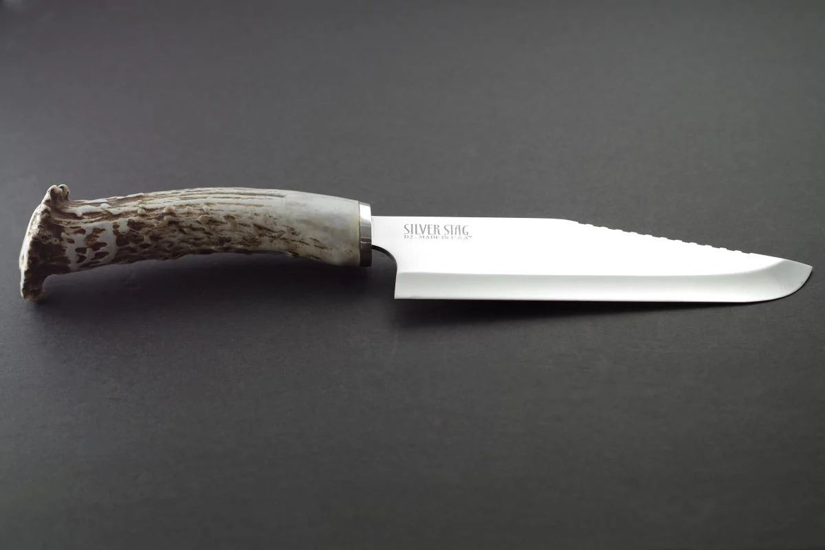 Thanks to our friends at Silver Stag Knives, this item is a heavy duty very versatile chef knife.