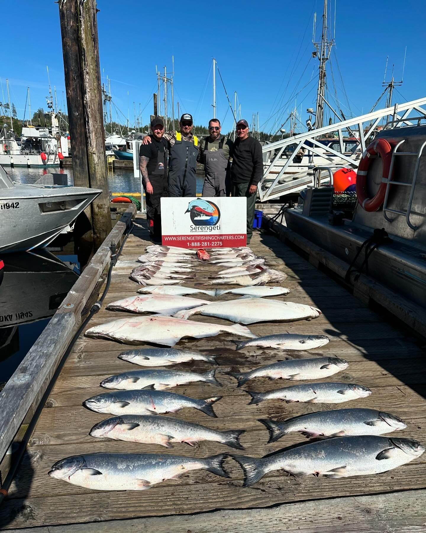 With Serengeti Fishing Charters, you're more than a client; you're a future friend who will treasure the memories of your Serengeti adventure. For the past 30 years, Dave Summers has been known as one of the best fishing charter guides on the west coast of British Columbia. Fishing out of Port Hardy on Northern Vancouver Island, Serengeti offers scenic, comfortable, and successful fishing charters. Enjoy a minimum of eight hours per day of fully guided fishing from the Ms. Heather III, their 31-foot Pursuit, or on their new 27-foot Grady White. All meals, breakfast, lunch and dinner, prepared in our galley kitchen or ashore in our home. Comfortable accommodation and amazing meals, every guest has their own room, so don't worry about your snoring buddy! Bait, fishing tackle and all required fishing equipment to land your catch. Cleaning and preparation of fish is also available through Hardy Buoys Smoked Fish Inc., who will smoke, fillet or flash freeze your catch. All you need to bring is the camera to record your catch! Departure Point Port Hardy BC