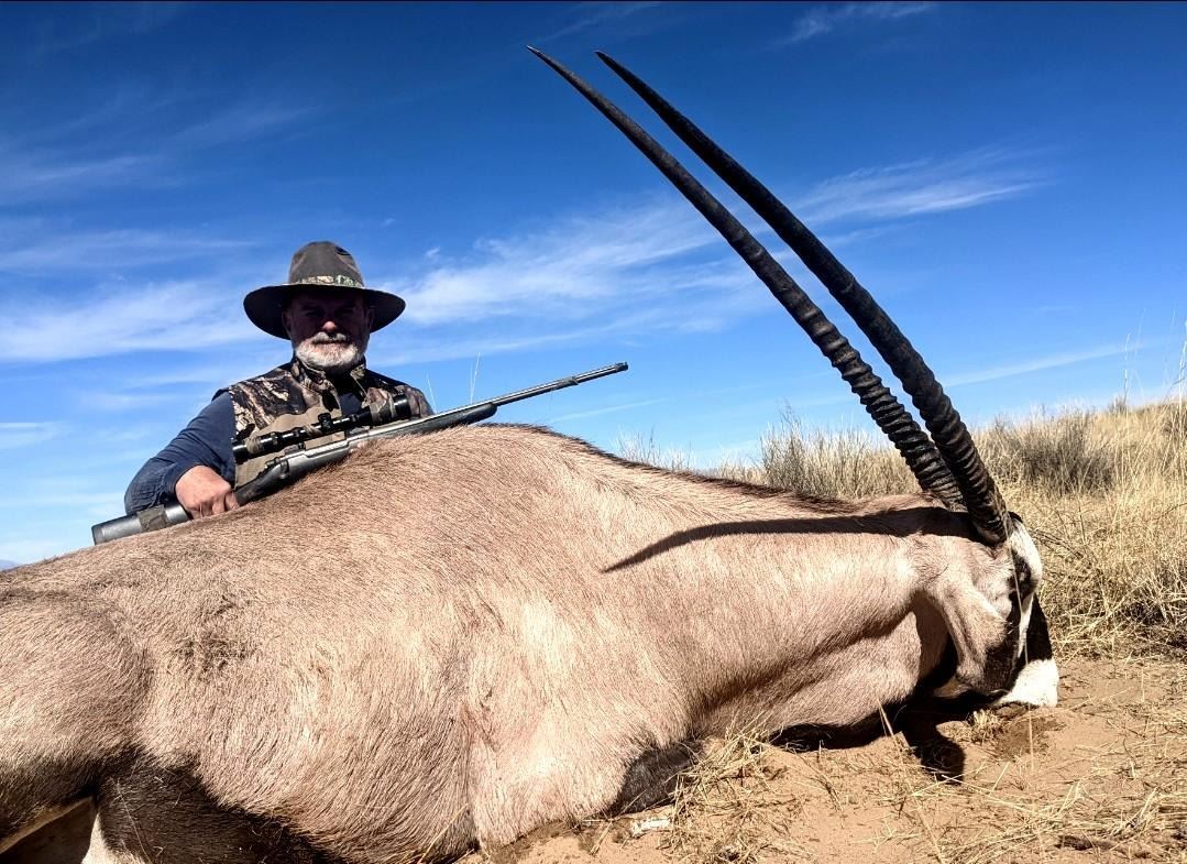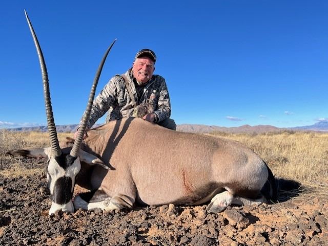 This means that the animal to be hunted must be a cow with two good horns that cannot exceed 35 inches, hunt can be upgraded, verify with outfitter for Availability. The location of the hunt is in south central New Mexico on 384,000 acres of 100% private land. This ranch has the largest free ranging oryx herd in North America.