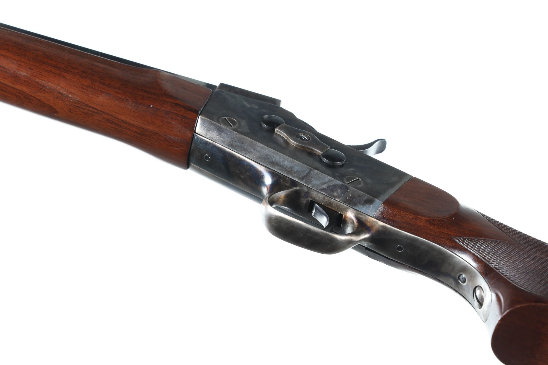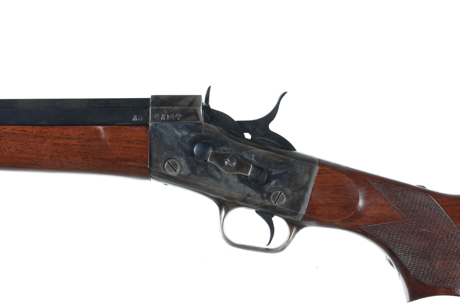 .45-70 Serial # R011564 Pedersoli Remington Rolling block cal, 45-70 Gov't. Tapered octagon Bbl. Checkered pistol grip with case colored receiver. Condition Very fine with excellent bright bore. Some light handling marks Sights are absent. Mechanically excellent. Barrel 30" 2002 Modern
