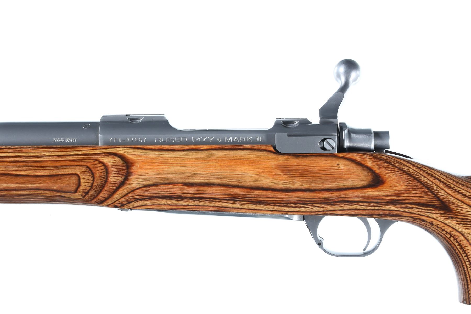 .308 Win Serial # 784-37067 Ruger M77 Mark II cal 308 Varmint with stainless steel construction. Laminated target stock. Condition, Excellent showing little use. Mechanically excellent. Barrel 26" 1997 Modern