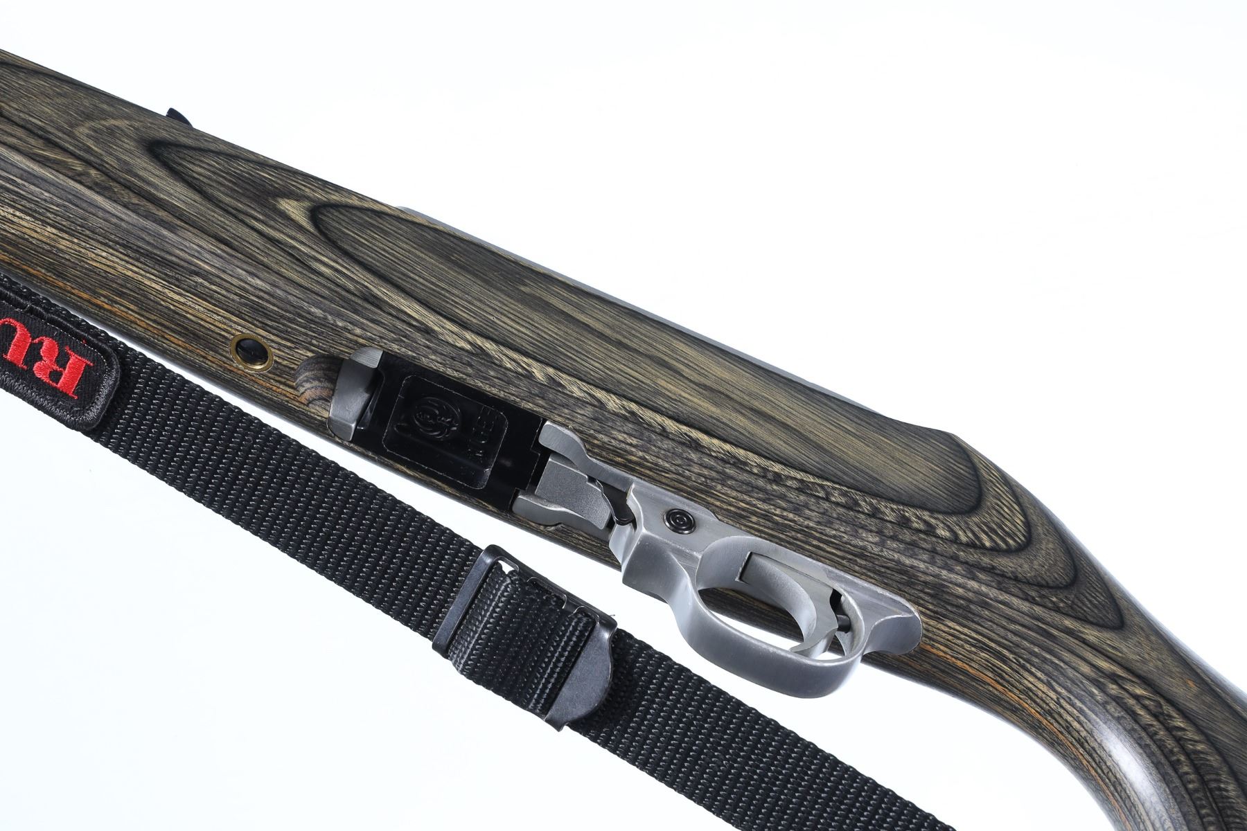 .22 lr Serial # 241-43614 Stainless Ruger 10/22 with laminated Mannlicher full stock. with Ruger nylon carry sling. Condition Very fine with little use evident. Mechanically excellent. Barrel 18" Modern
