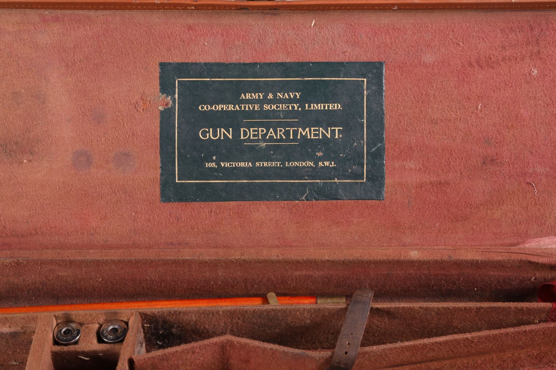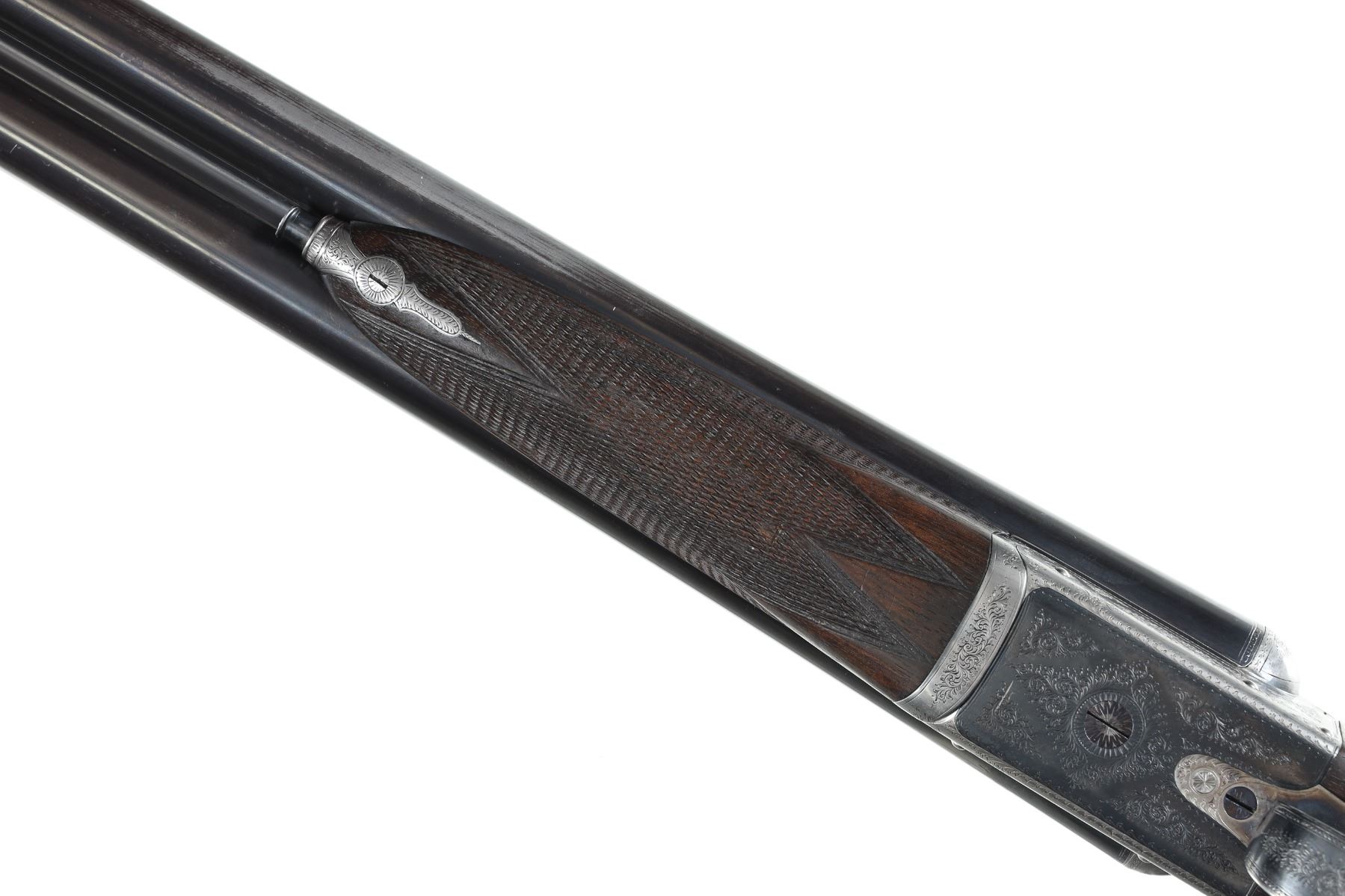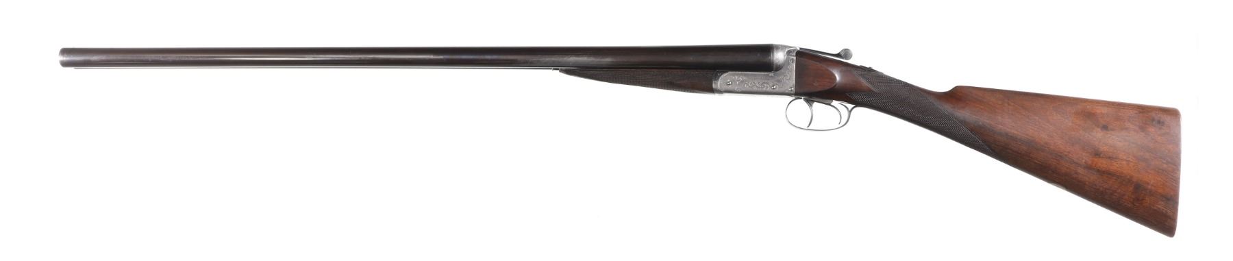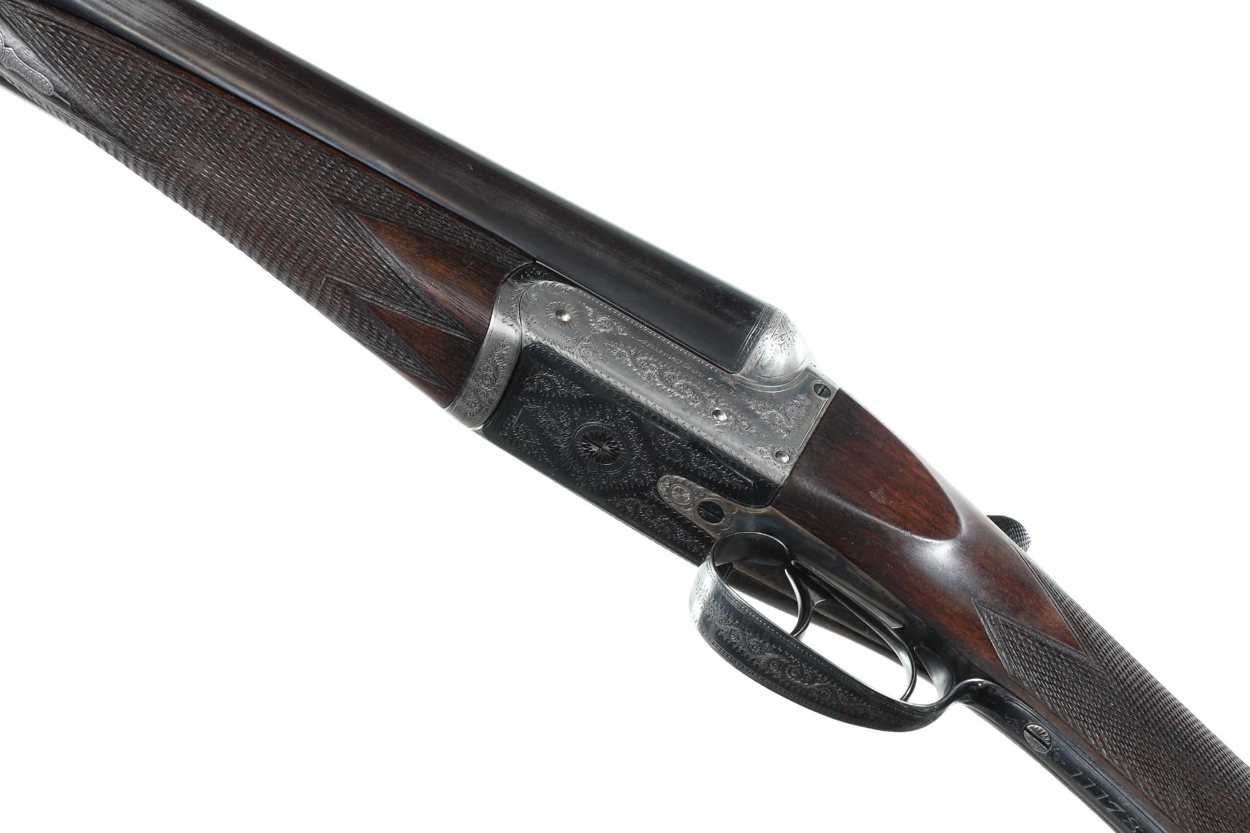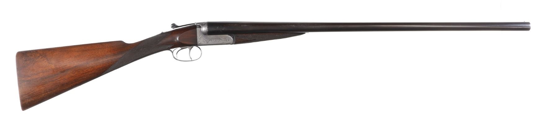12ga Serial # 11178 Army Navy CSL 12 bore double on Boxlock action with straight English walnut stock and splinter forear. Double trigger with ejectors. Choked Full & cylinder with 2 1./2" chambers. 14 1/4" LOP 1 1/2" DAC 2 1/4" DAH. Superb quality little doublegun. Condition, Bbl retains over 90% blue with bright bores. Receiver remains bright on sides with proper blue on trigger plate. Stocks have som light handling and finish loss from use. Mechanically excellent. Mfg in 1933 Barrel 28 C&R
