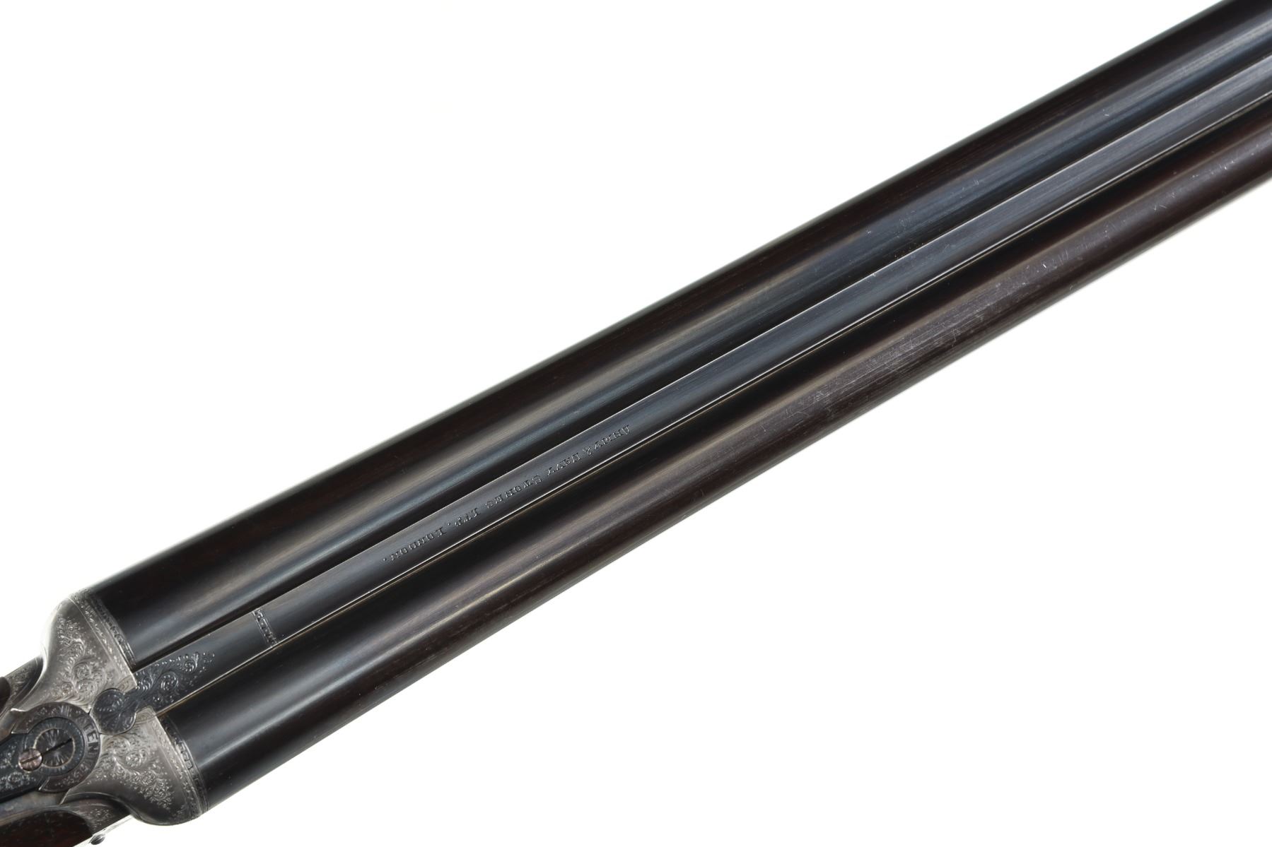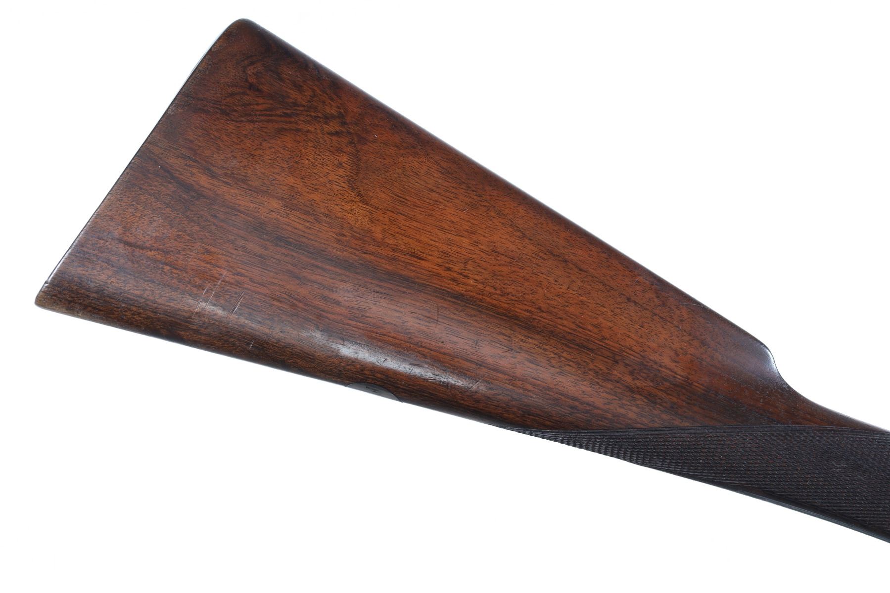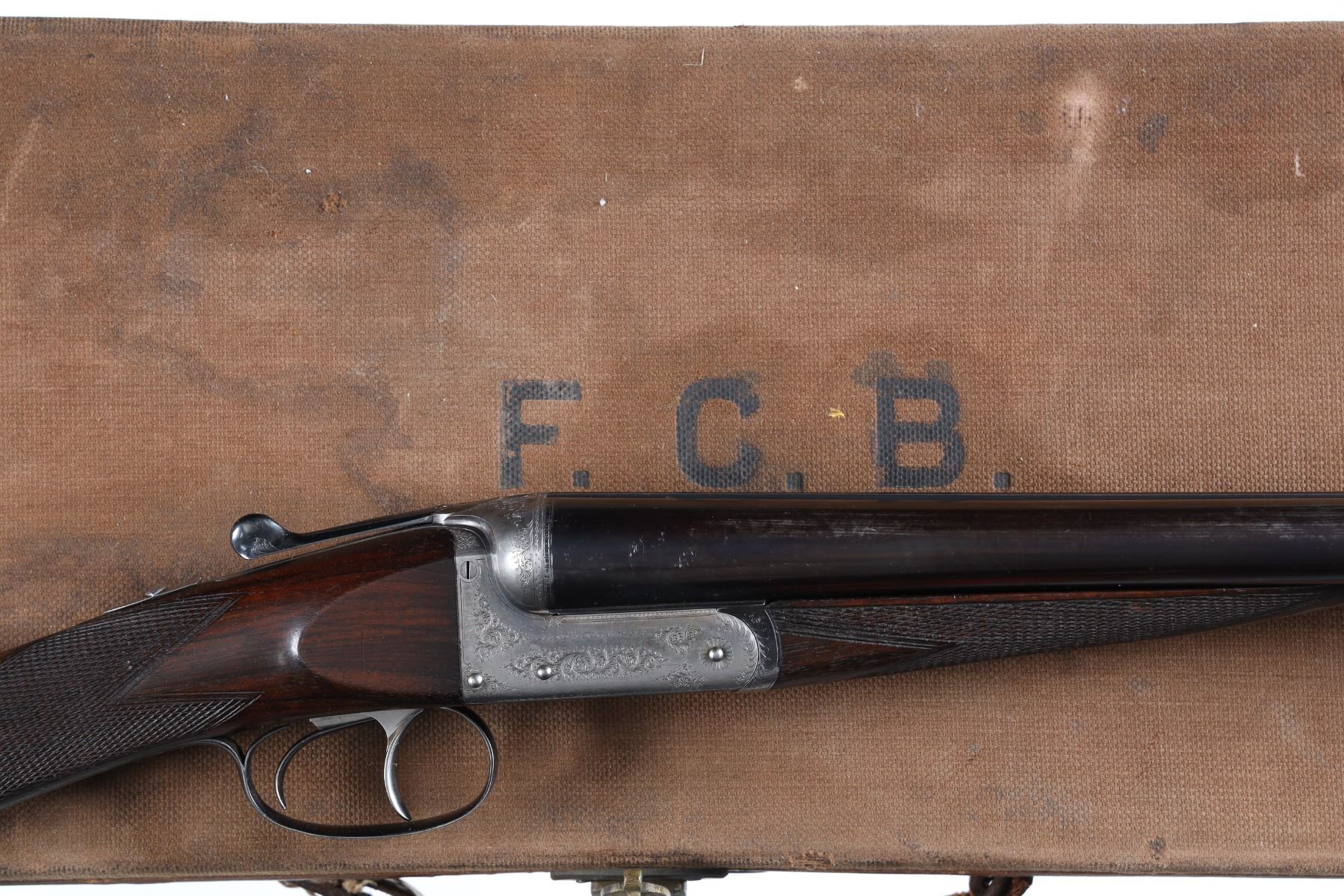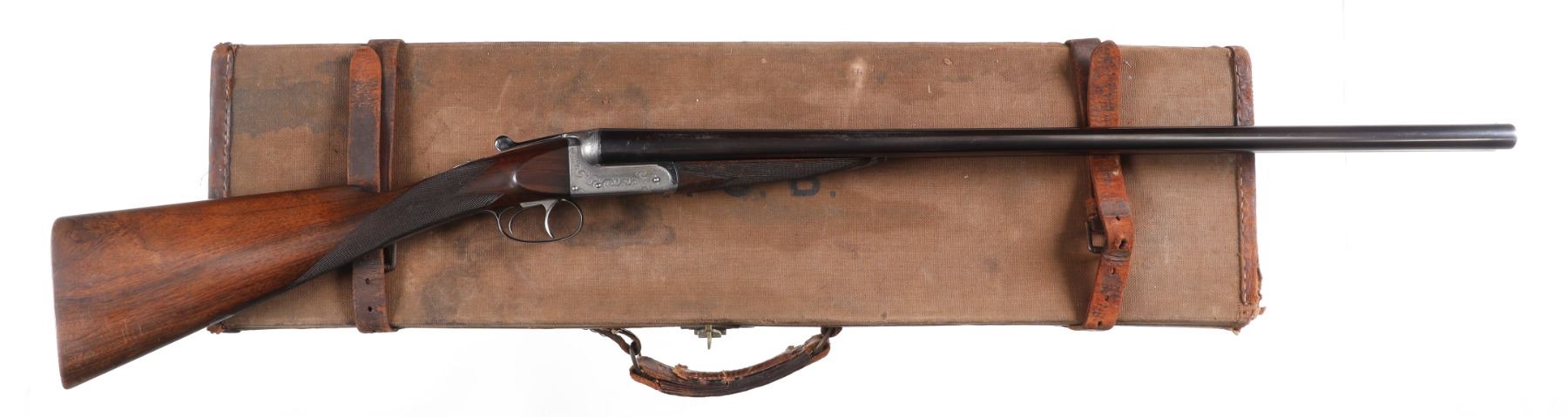 12ga Serial # 11178 Army Navy CSL 12 bore double on Boxlock action with straight English walnut stock and splinter forear. Double trigger with ejectors. Choked Full & cylinder with 2 1./2" chambers. 14 1/4" LOP 1 1/2" DAC 2 1/4" DAH. Superb quality little doublegun. Condition, Bbl retains over 90% blue with bright bores. Receiver remains bright on sides with proper blue on trigger plate. Stocks have som light handling and finish loss from use. Mechanically excellent. Mfg in 1933 Barrel 28 C&R