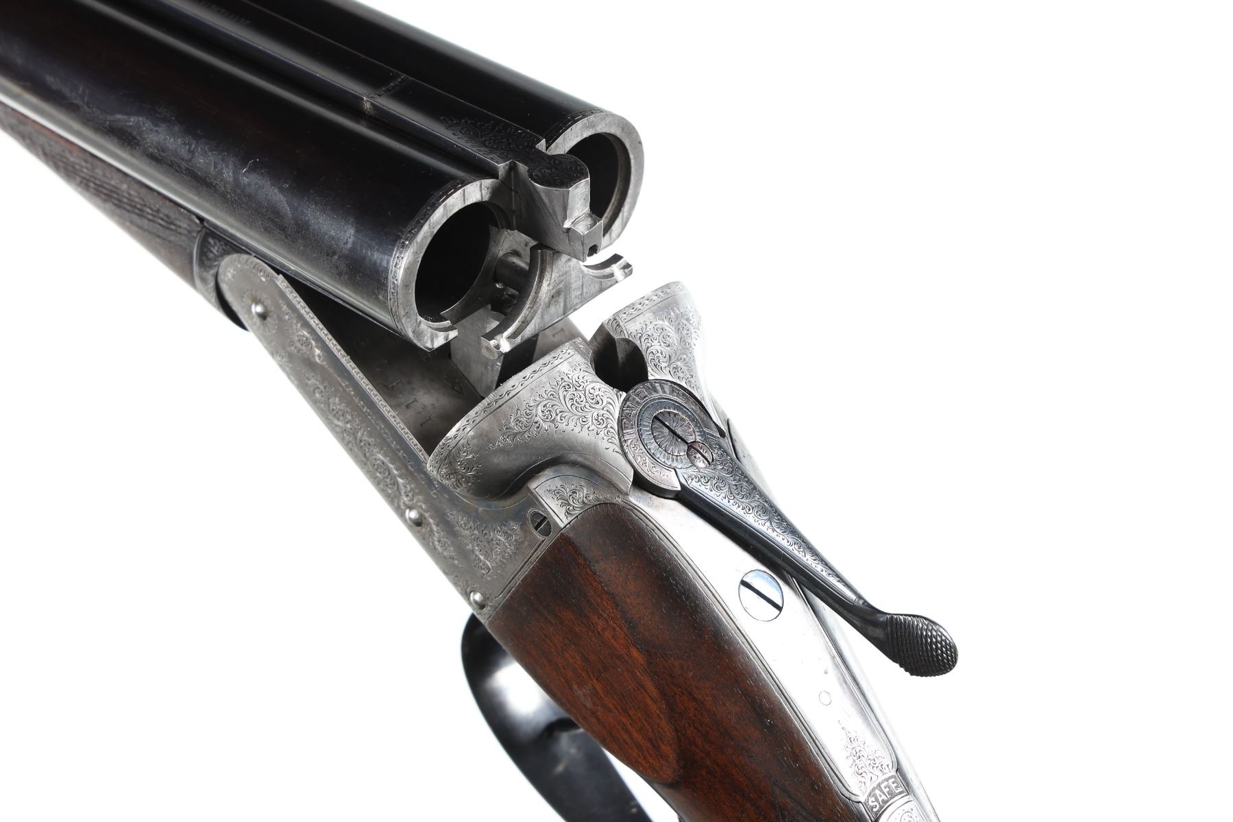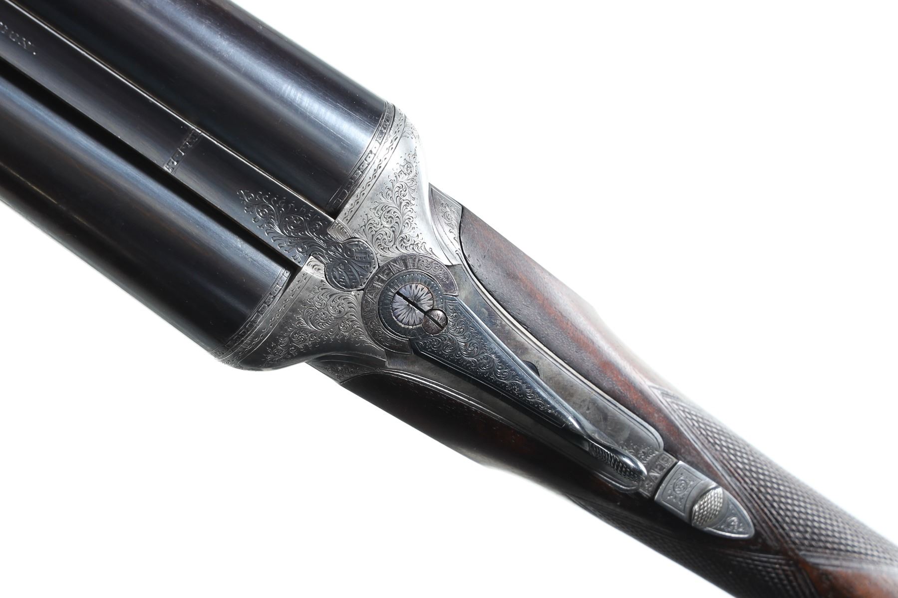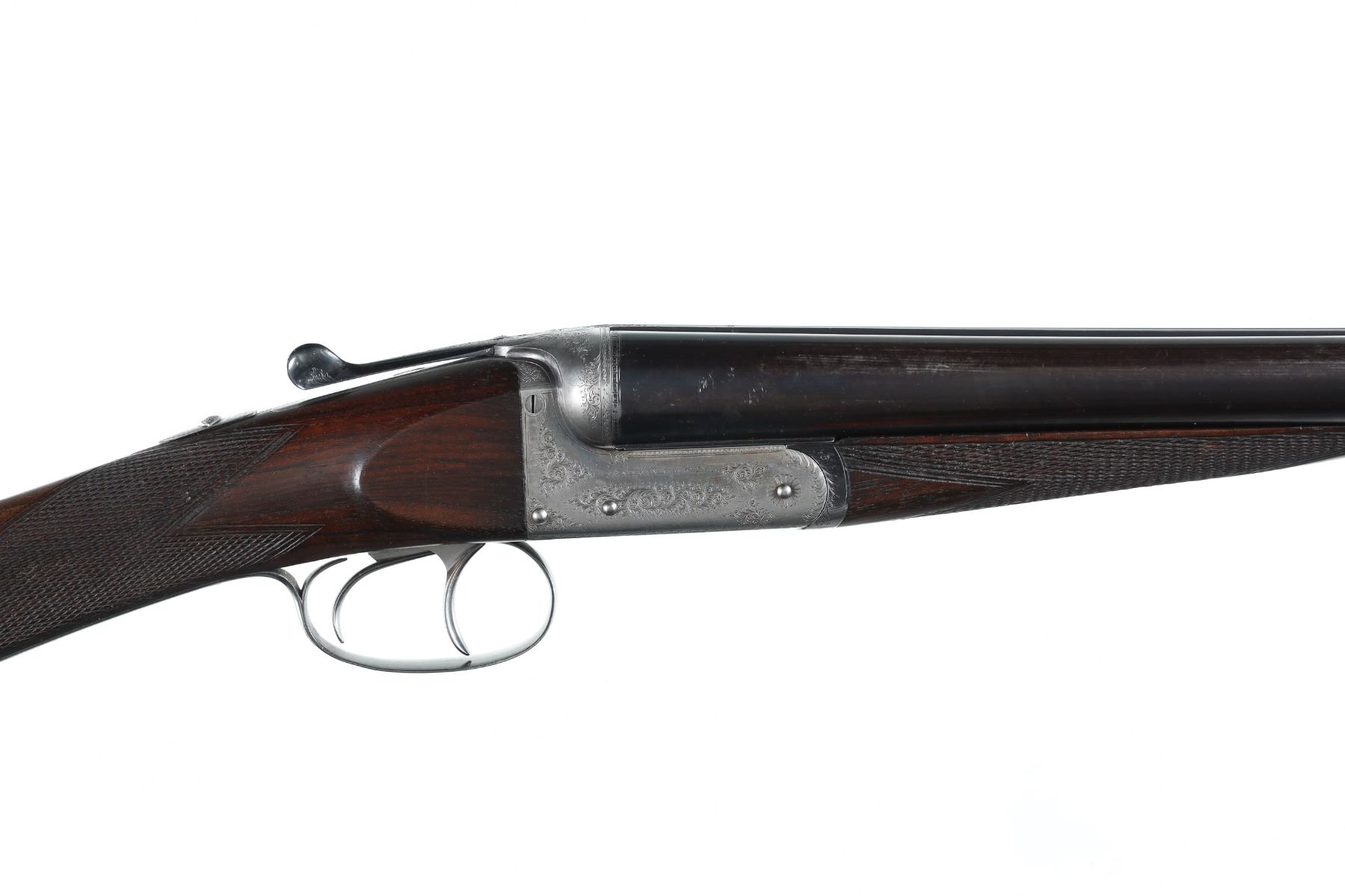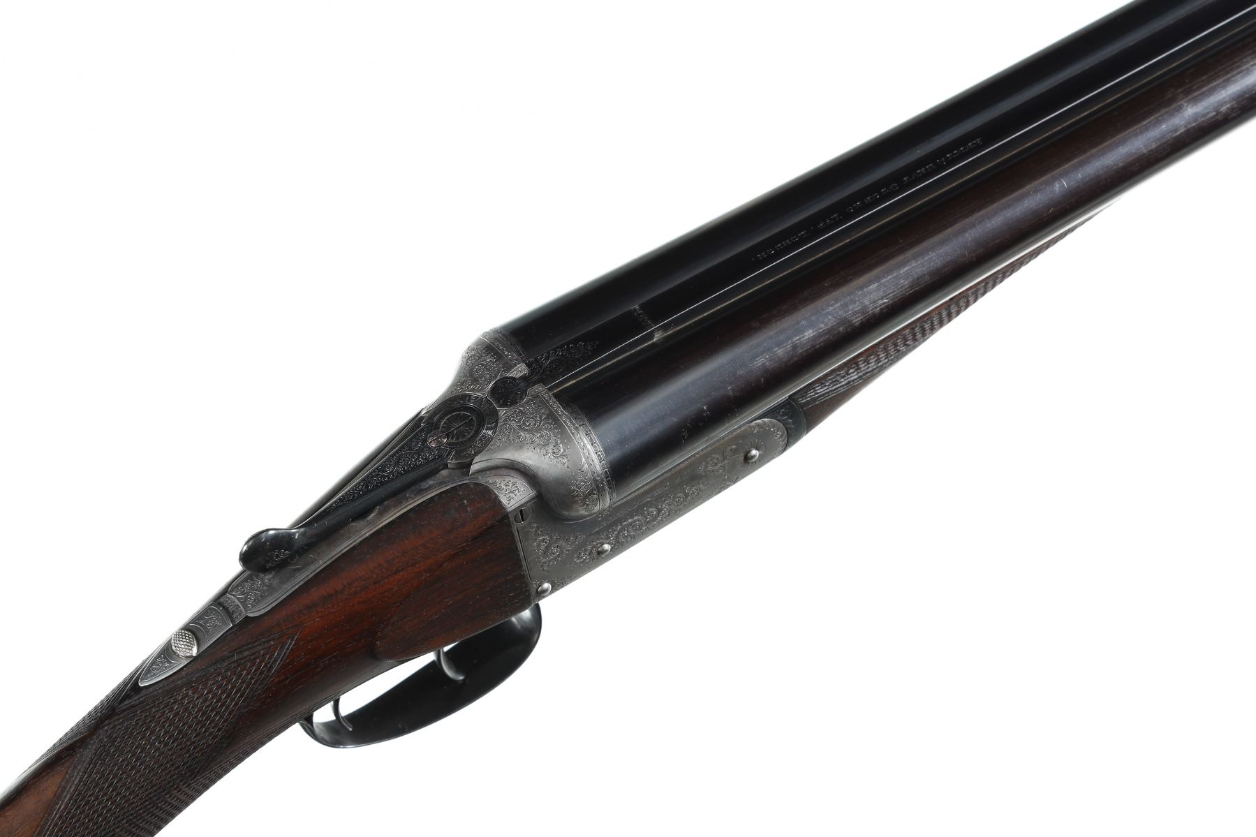 12ga Serial # 11178 Army Navy CSL 12 bore double on Boxlock action with straight English walnut stock and splinter forear. Double trigger with ejectors. Choked Full & cylinder with 2 1./2" chambers. 14 1/4" LOP 1 1/2" DAC 2 1/4" DAH. Superb quality little doublegun. Condition, Bbl retains over 90% blue with bright bores. Receiver remains bright on sides with proper blue on trigger plate. Stocks have som light handling and finish loss from use. Mechanically excellent. Mfg in 1933 Barrel 28 C&R