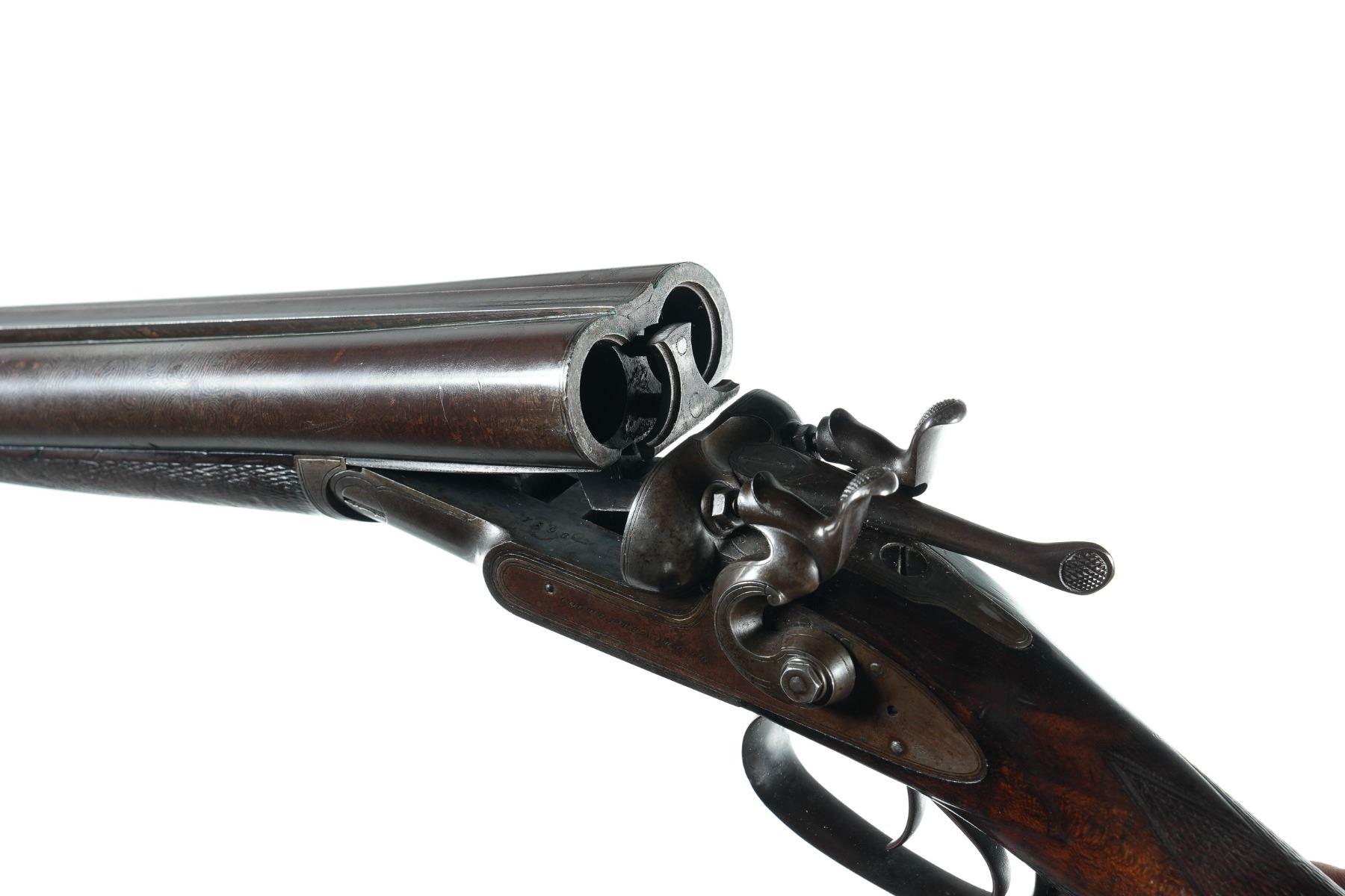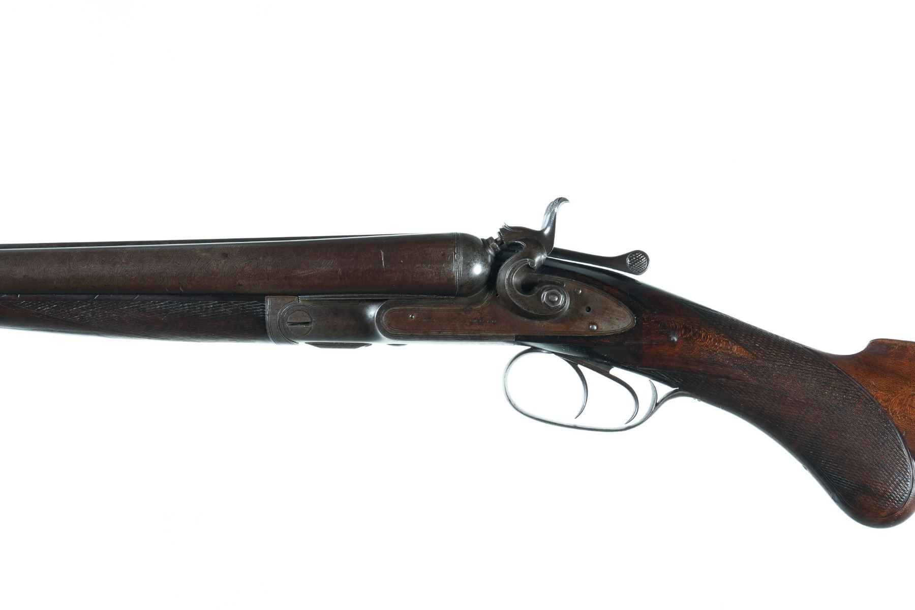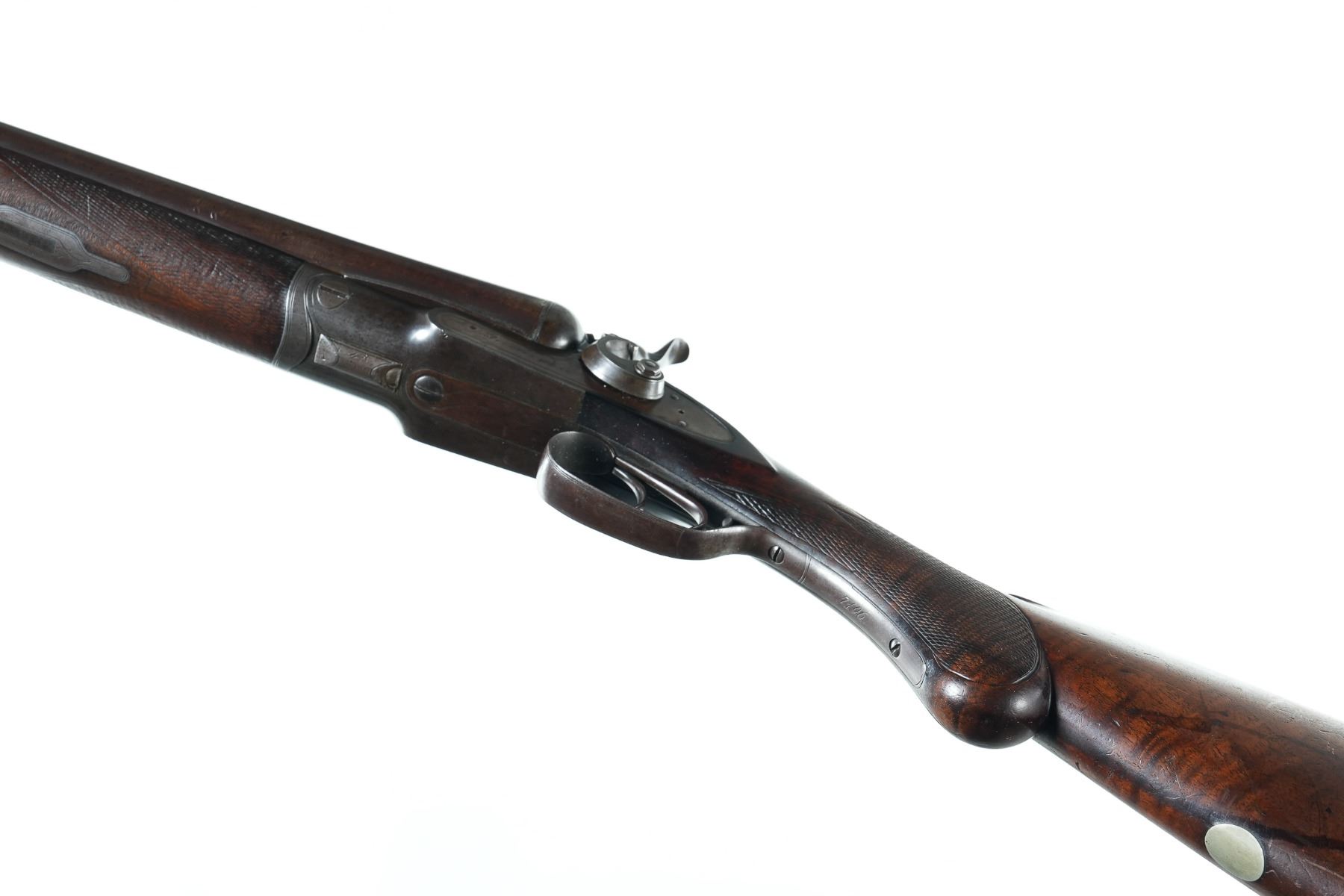 12ga Serial # 7196 Manufactured in 1880. Chambers measured 2 5/8" with extractor, chokes measured improved modified/improved modified, and 14" LOP. Condition very good as attic found and untouched Barrel 30" NO4473
