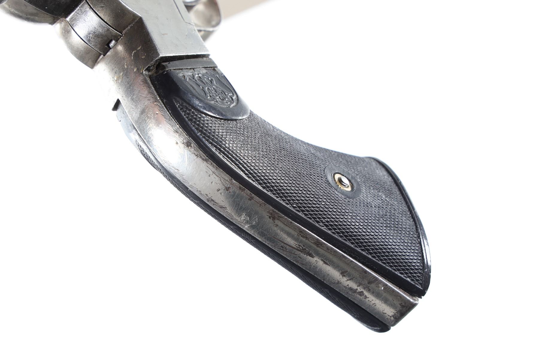 .44 RCF Serial # NSN Rare Remington Model 1888 caliber 44 Remington with single line Bbl, address and six shot fluted cylinder. Black checkered composite grips with Remington monogram at top. Condition: Very good with most nickel remaining and good bore with some darkness in grooves. Action operates properly. Grips are contemporary replacements. A very rare ANTIQUE Barrel 5 3/4" NO4473