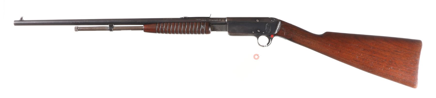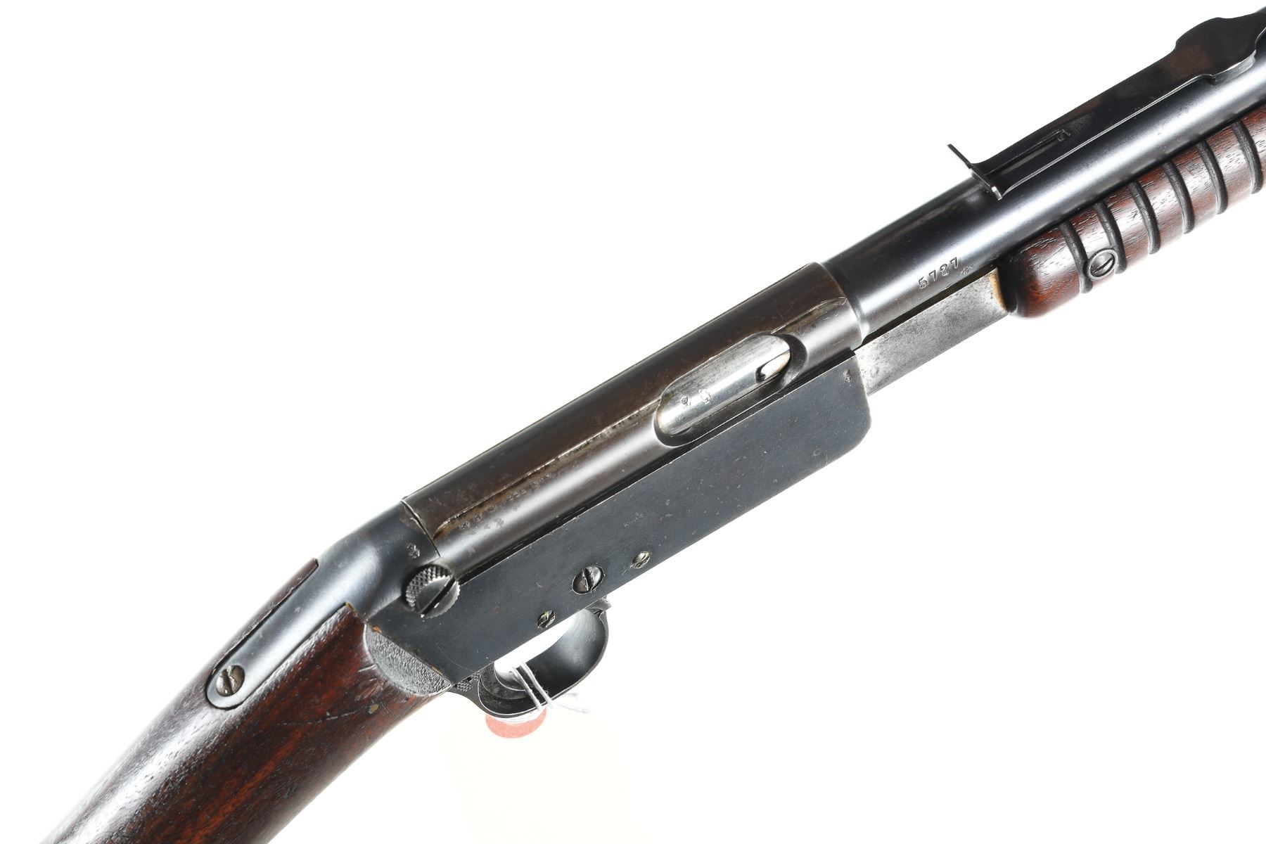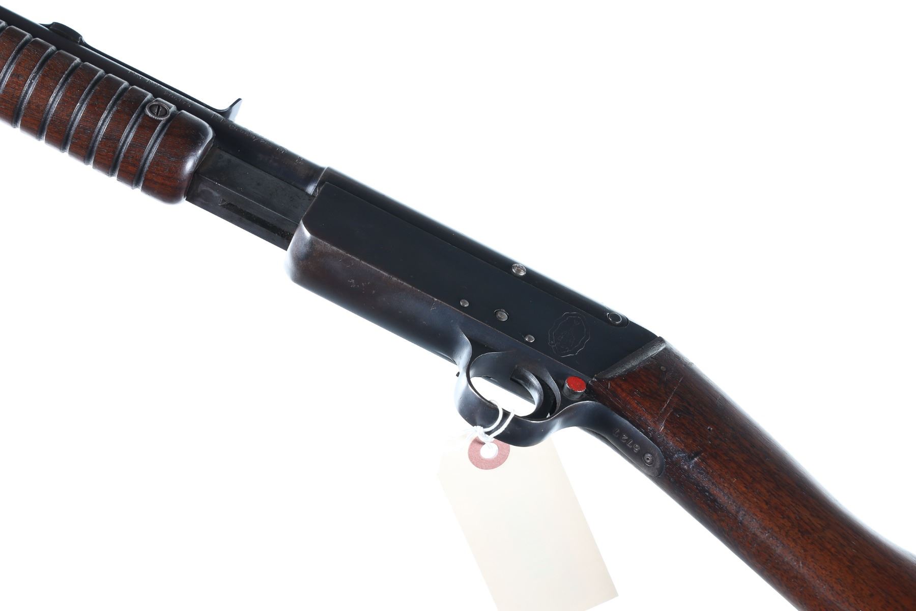 .22LR Serial # 5727 BSA Repeating .22 Pump rifle introduced in 1925. Varnished walnut stocks with tube magazine. BSA monogram on left sdie of take down frame. Cal, 22 S-L-LR. Condition, Very fine with over 75% blue finish remaining with top of reciver grooved for scope use. Stocks are very good with light impressions. Bore is very good and mechanically fine. Barrel 21 1/2" 1945 C&R