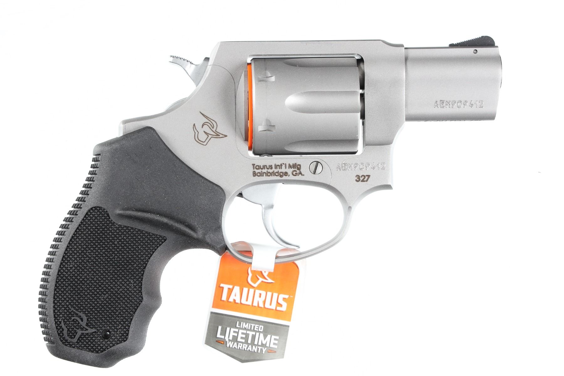 .327 fed mag Serial # AEM909412 Taurus 327 Stainless with rubber grips 6 shot, fixed sights. Comes in factory box and remains as new Barrel 2" Modern