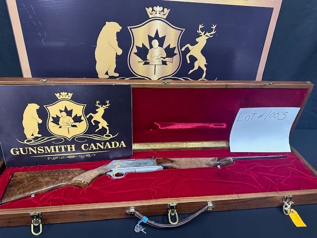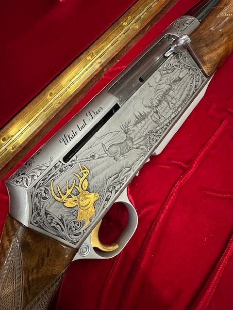 Lot 1003 Browning BAR II WHITE TAIL DEER, CAL 30-06 RIFLE, Double Signed, Engraved and Gold Inlaid