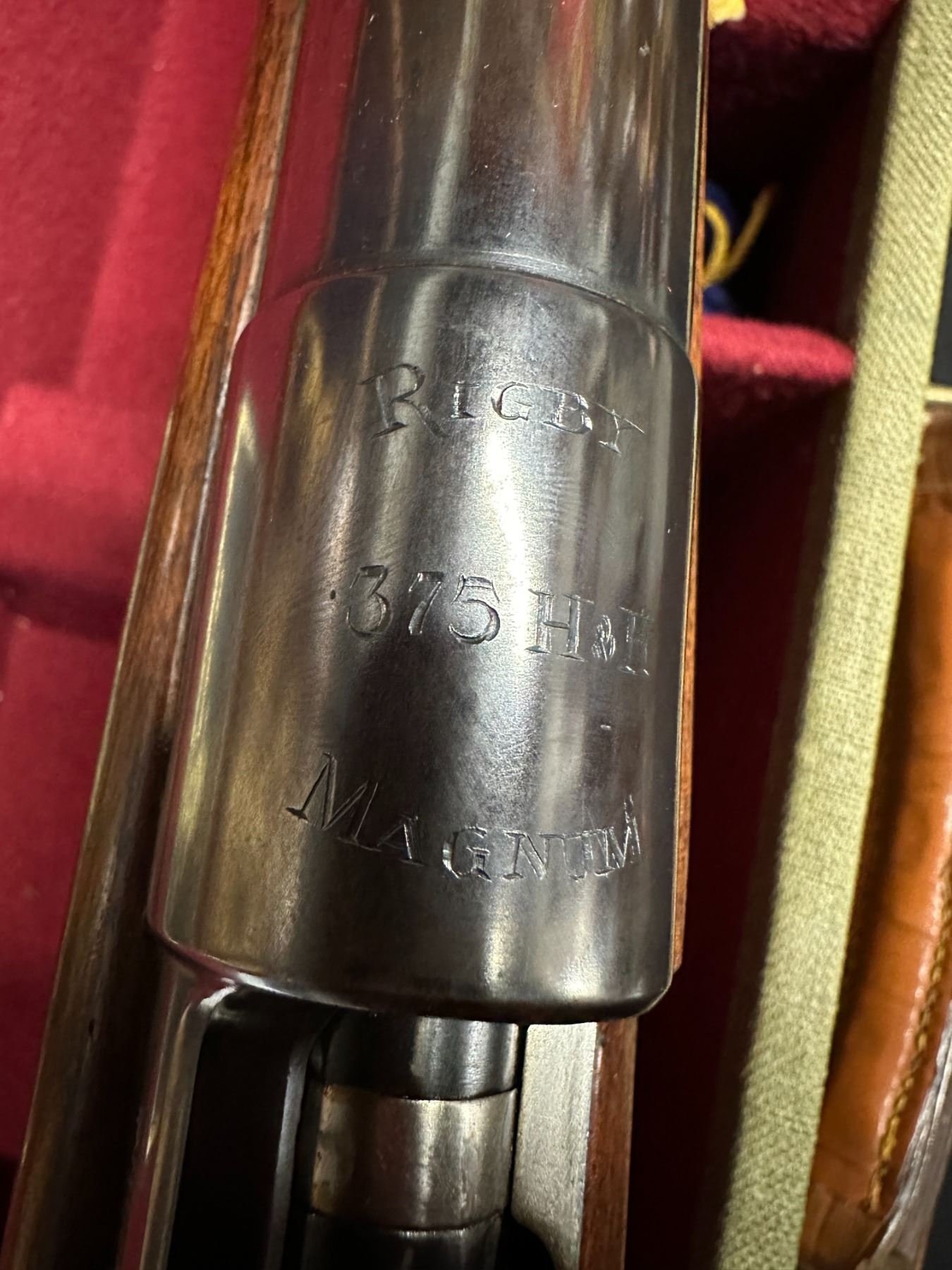 The top of the receiver is engraved "RIGBY 375 HH MAGNUM" and