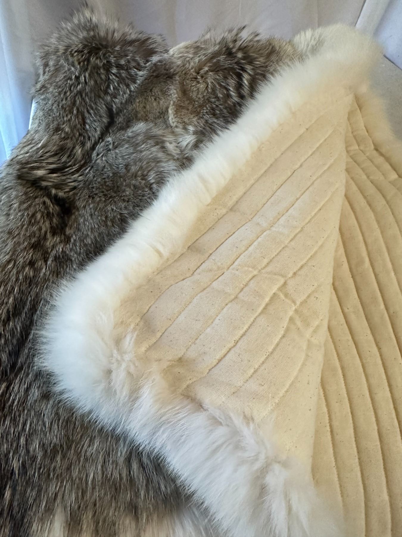 This one-of-a-kind extra fine Arctic Wolf blanket was made from pelts hand-picked from dozens of skins by a Master Furrier to find the 8 skins that are perfect for this blanket; it’s guaranteed to impress even the most knowledgeable and well-educated fur lover.