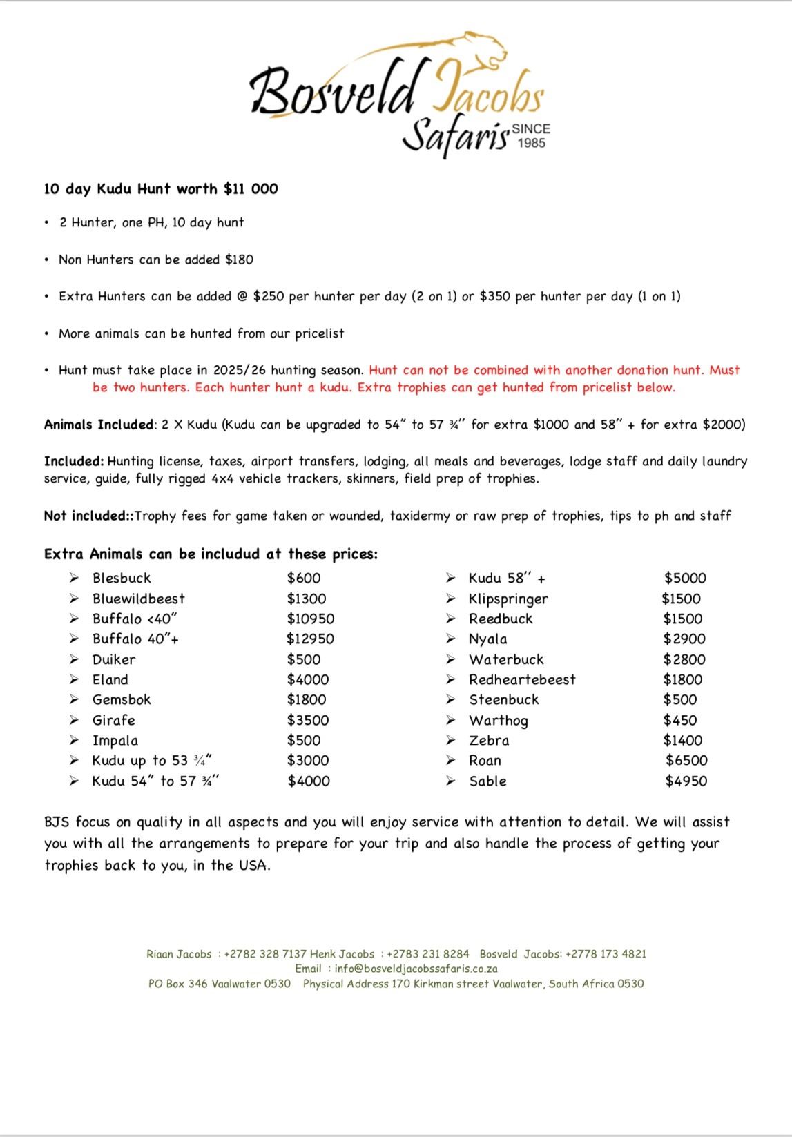 Lot 30 Bosveld Jacobs Kudu Safari for 2