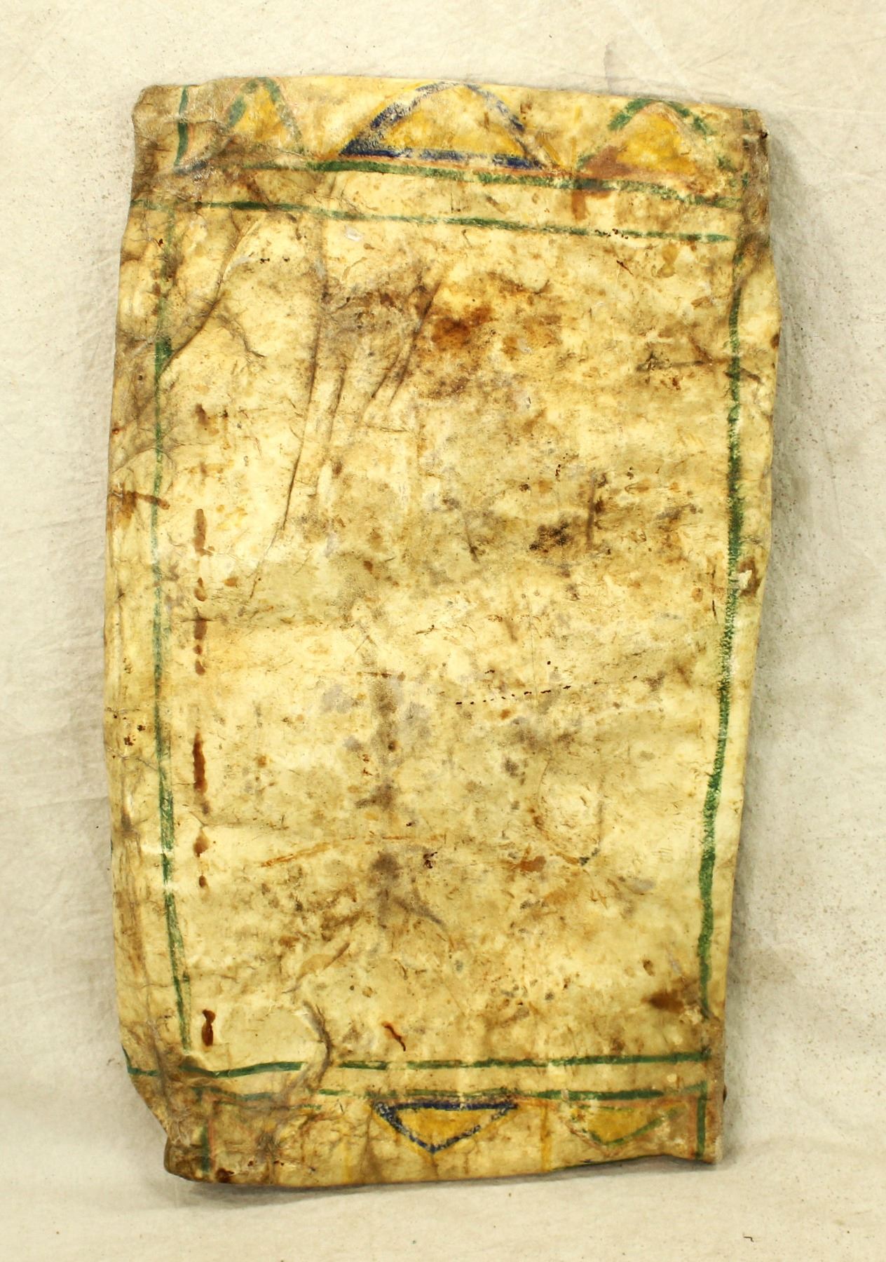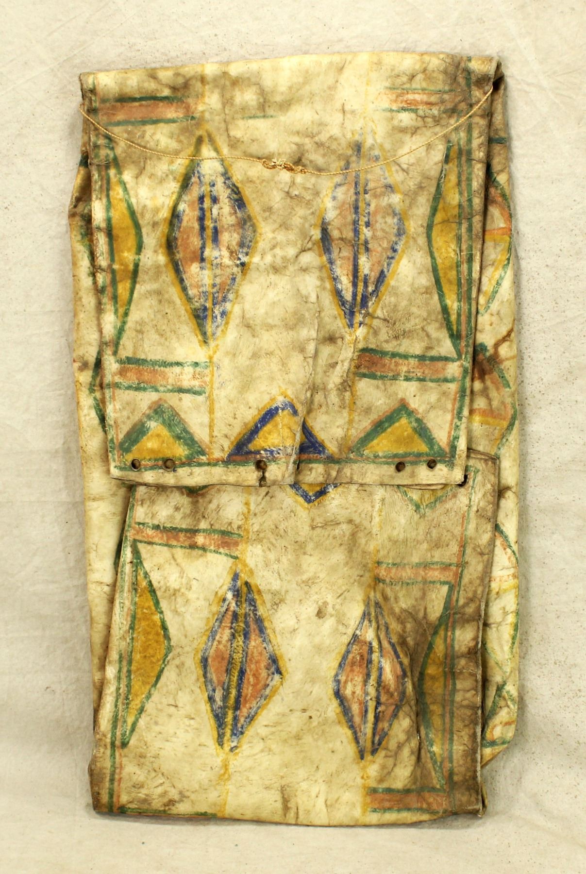 A nicely aged and patinaed unusually large Native American folding parfleche envelope, measuring 15"x 26".