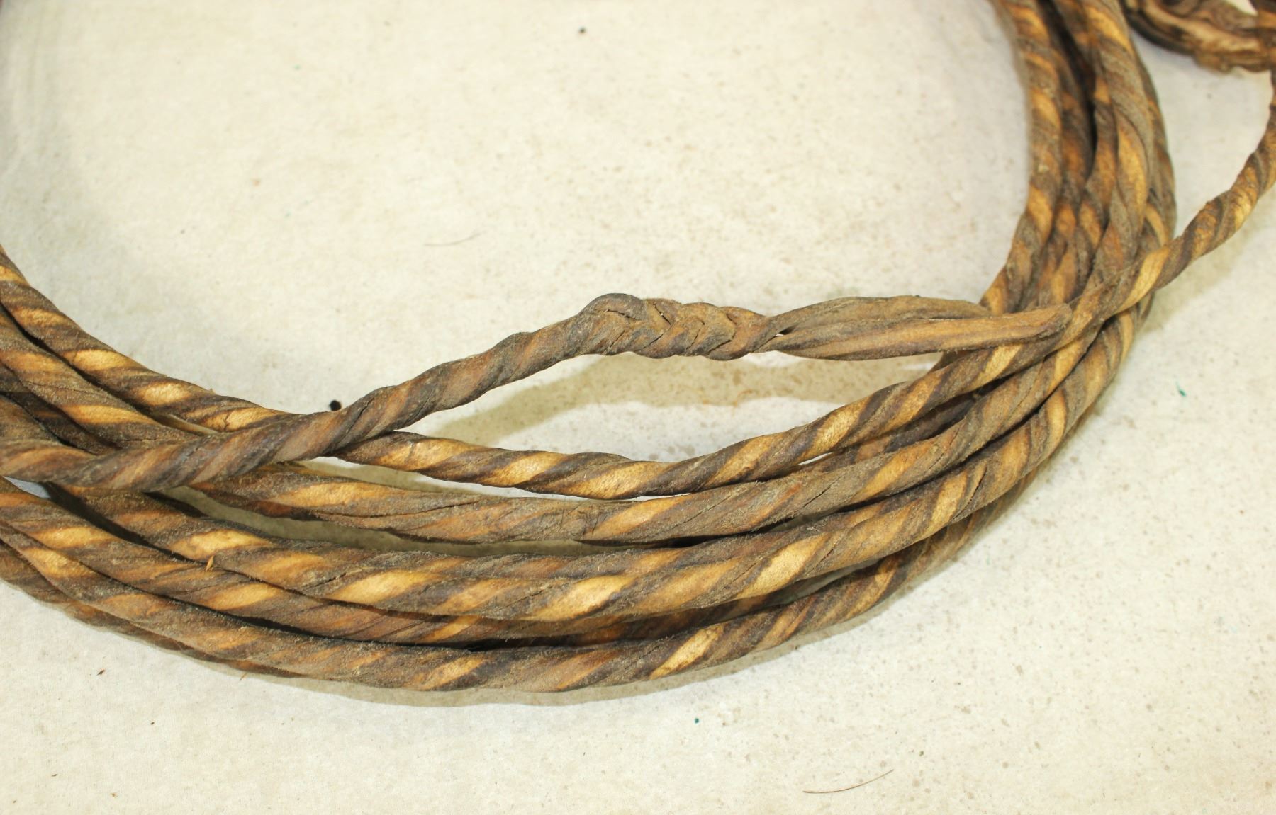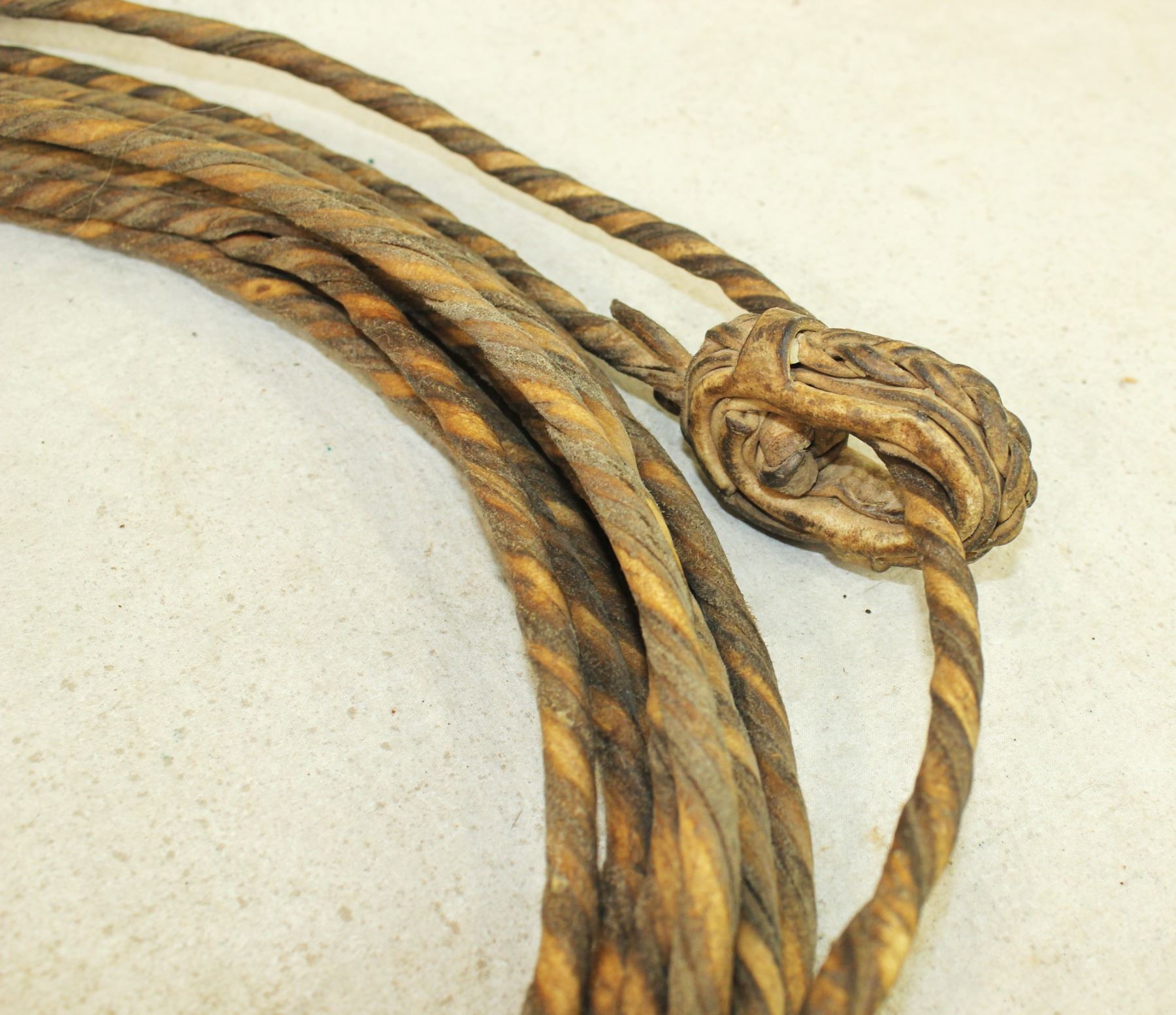 A seldom seen 37' twisted rawhide rope with a good look and great patina, with a fabulous hondo.