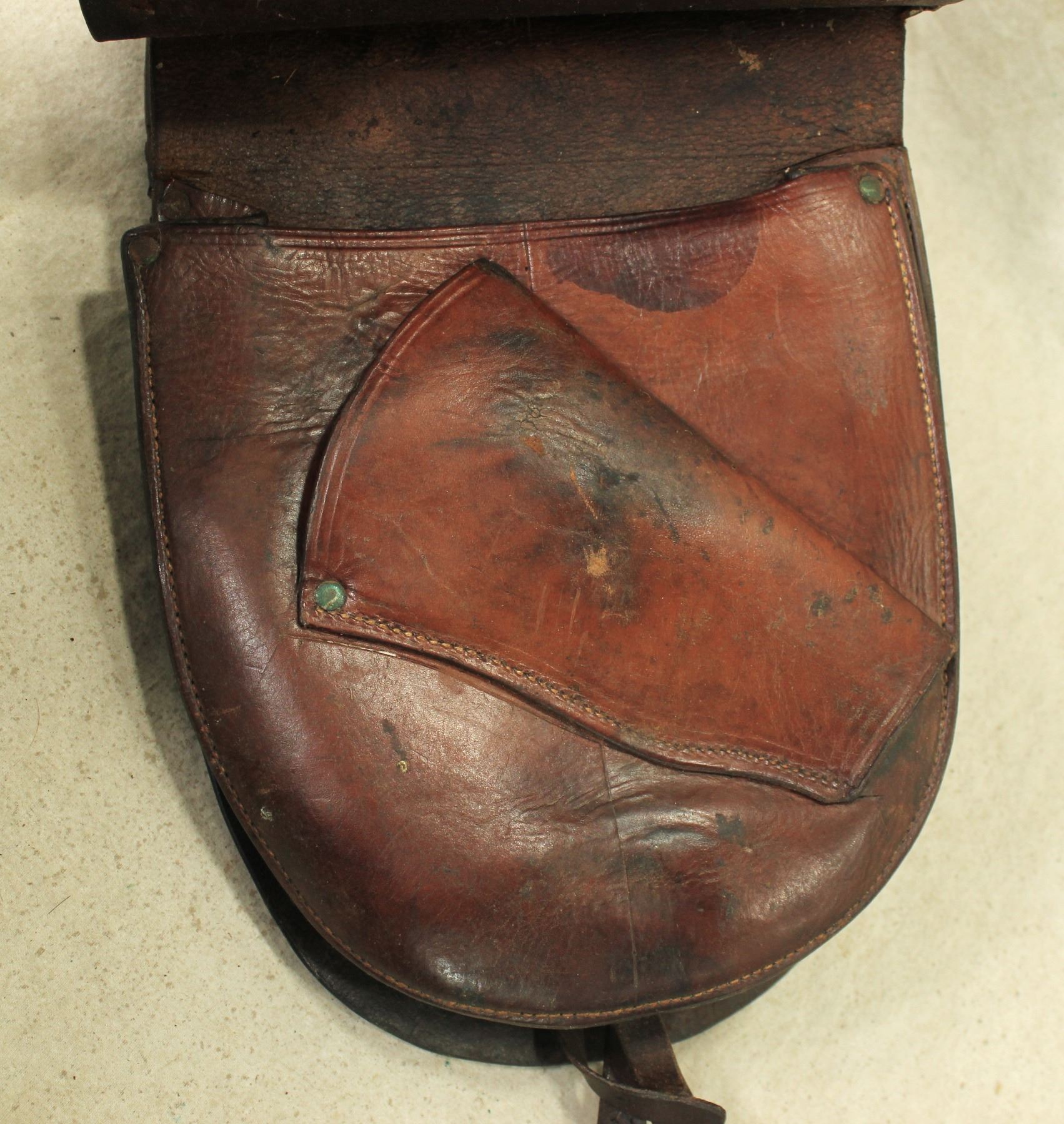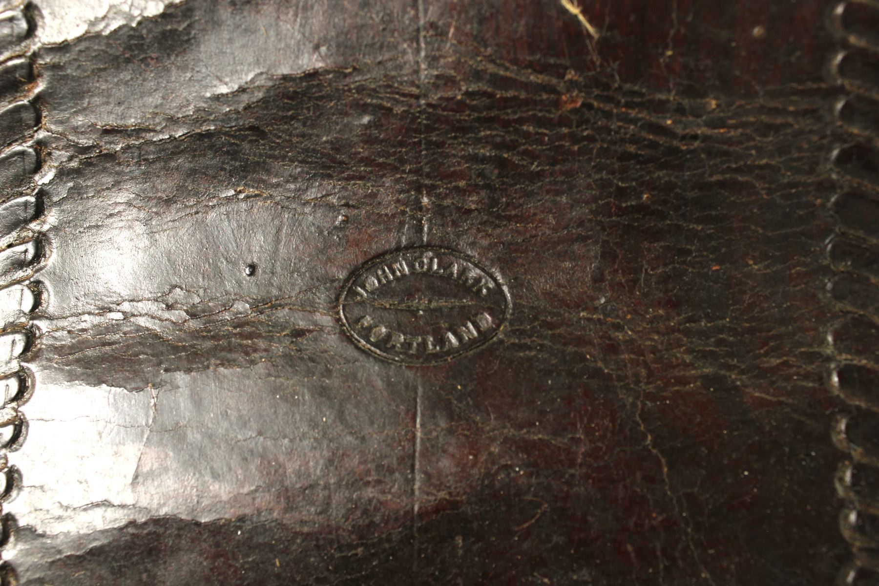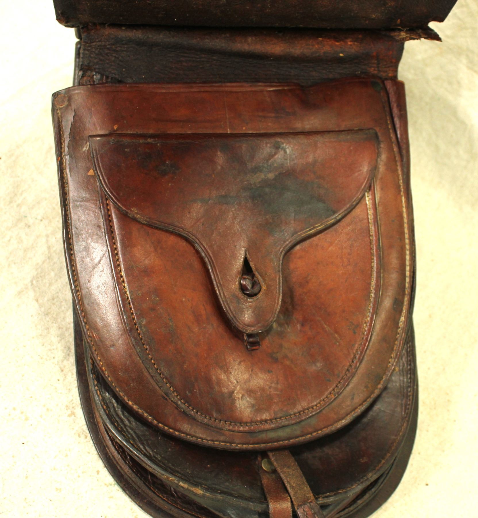 A very early pair of Portland, Oregon pommel bags with flaps carved in an early pattern, with desirable interior holster and pouch, and sporting nice maker's marks.
