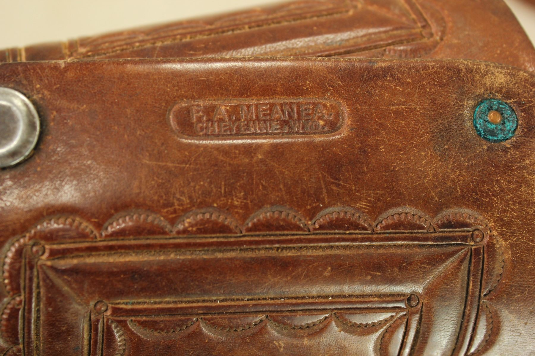 A greatly desired pair of maker marked cuffs, nicely tooled and displaying beautiful color pleasing condition.