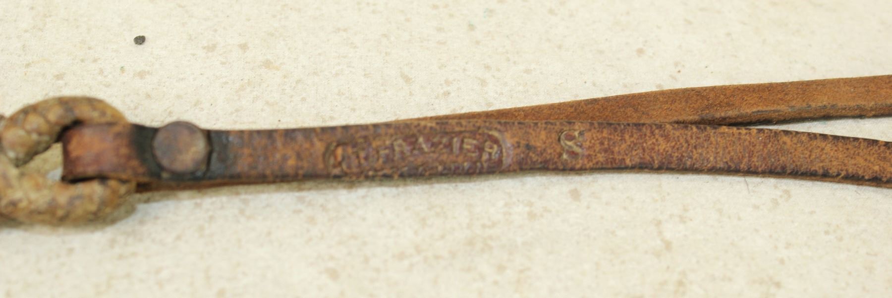 A rarely seen maker marked quirt, nicely made of braided leather, showing great patina and appeal.