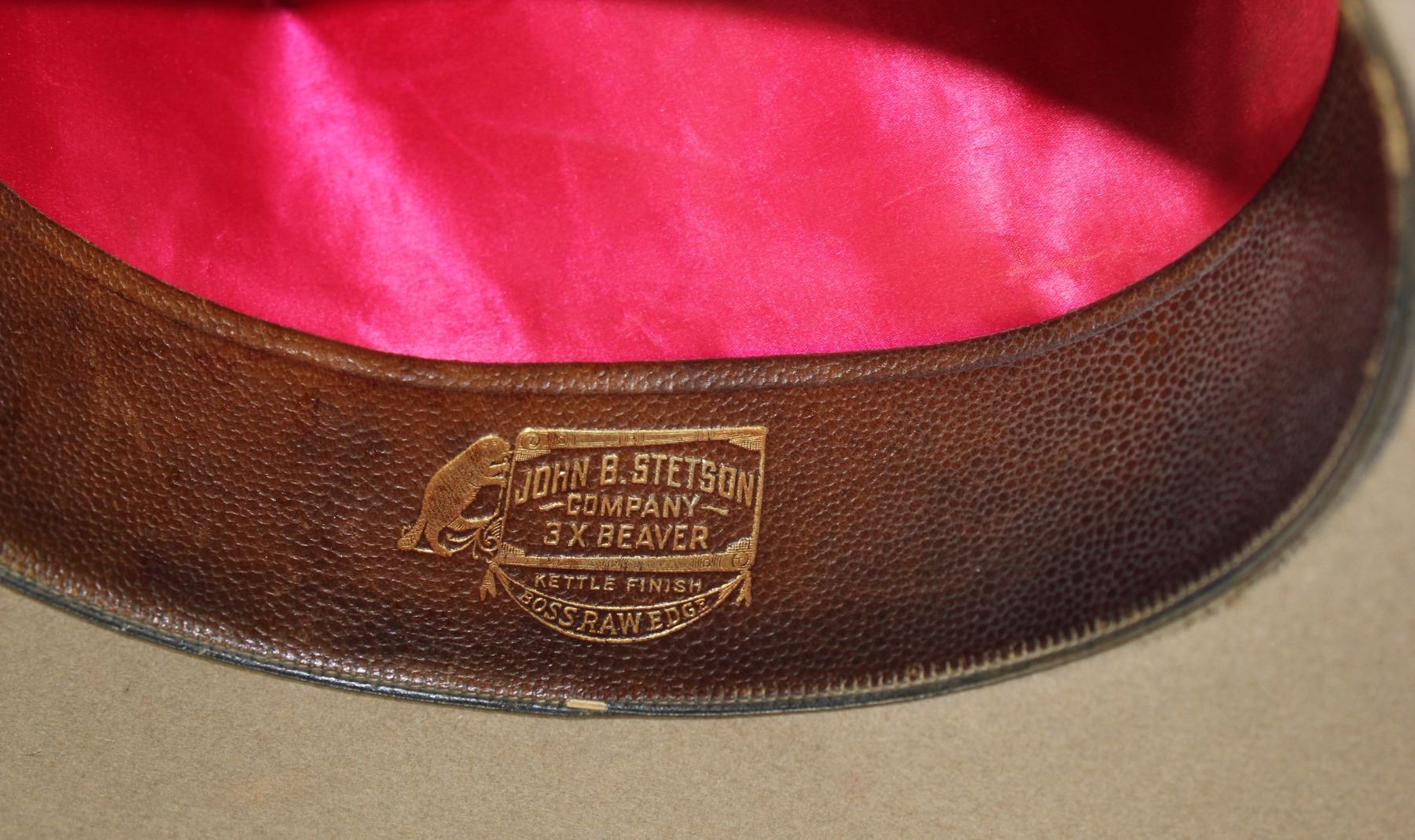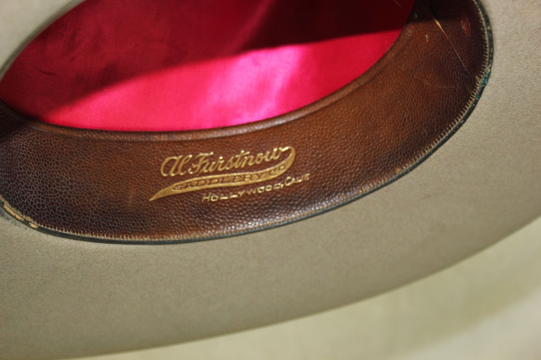 An outstanding and highly collected large brimmed Stetson hat with Al furstnow marked sweatband, a Tom Mix style crown, rolled and bound edge, and a wide ribbon hatband. In an attractive color and nearly unworn mint condition.