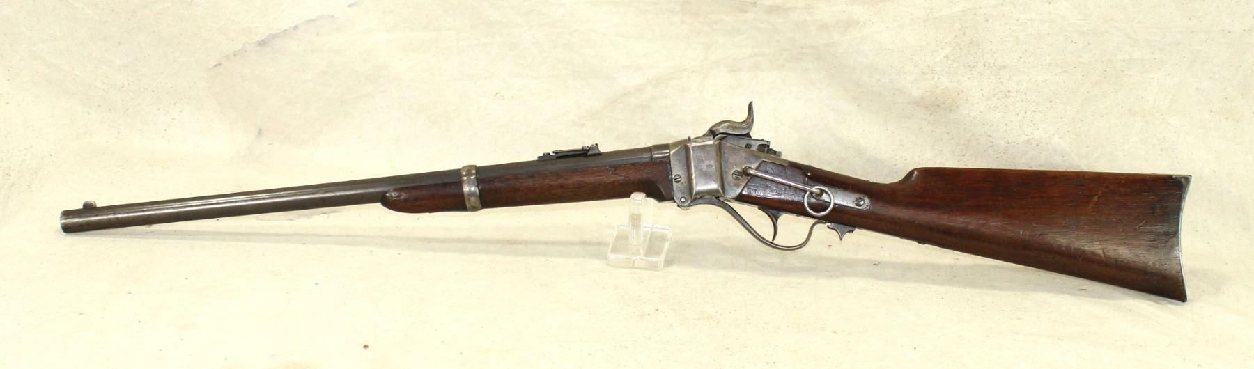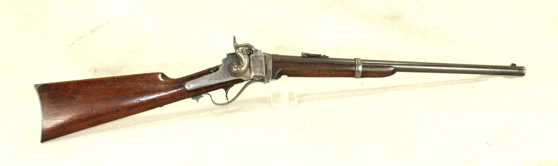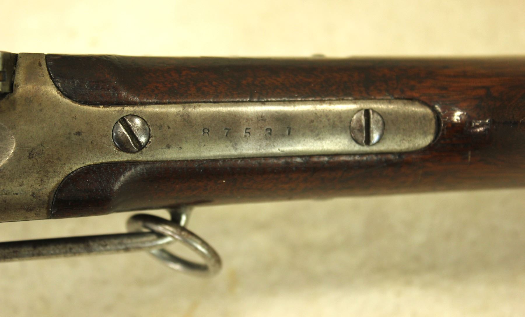 Serial #87531, A beautiful Antique, C. Sharps Model 1868 Cartridge Conversion carbine. Caliber 50-70 Gov’t with folding ladder adjustable rear sight and post mounted blade front sight Case colored receiver with oil finished walnut stocks. These are one of the primary US Trooper issued long arms of the Indian war period and later used extensively by frontiersman and cowboy ranchers alike. A total of 10,001 sharps were converted in both rifle and carbine with many finding their way west.