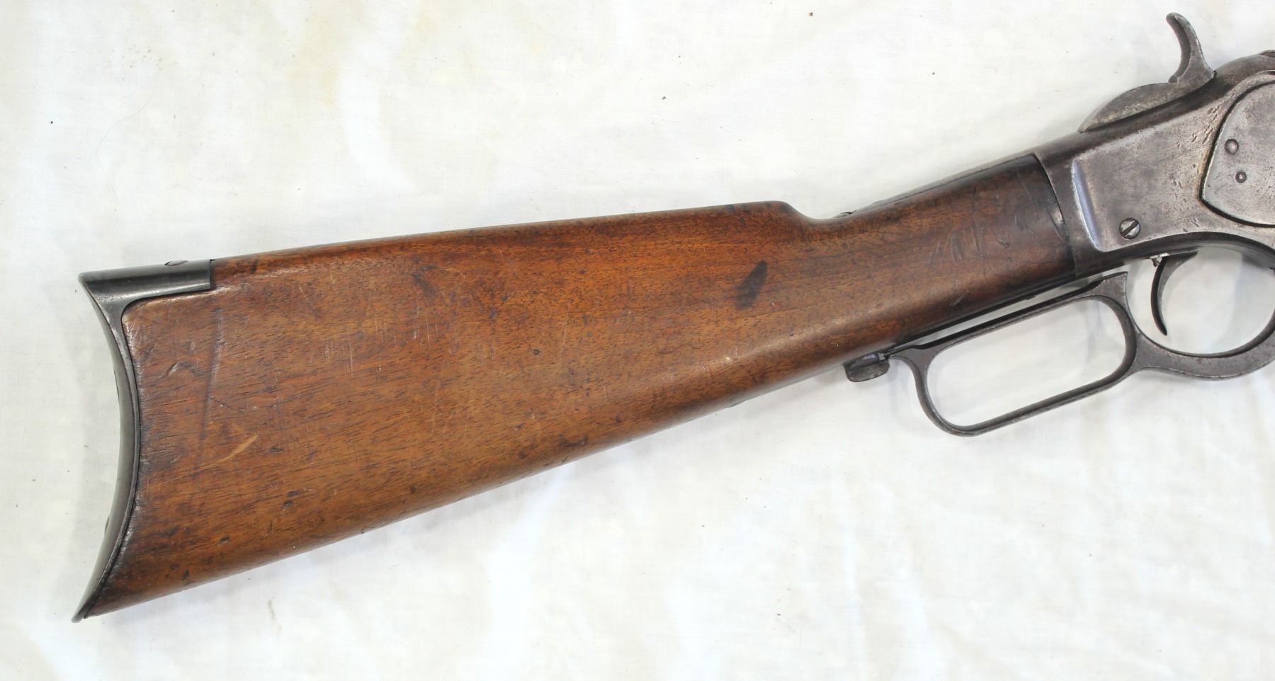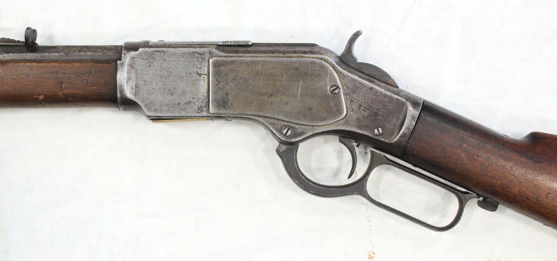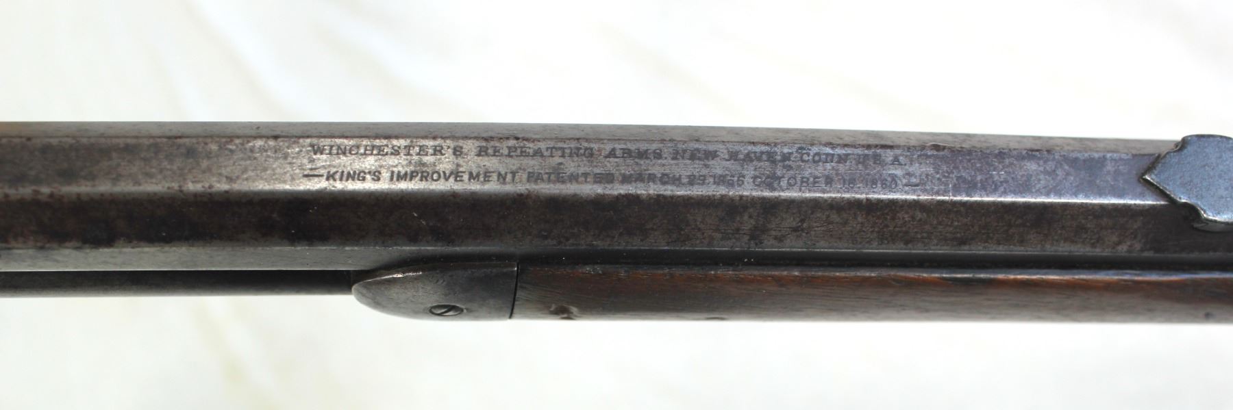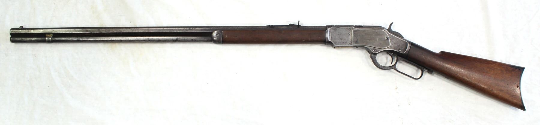 Serail #386749, 38-40 caliber, an exceptionally rare Antique 30" octagon barreled Winchester rifle with a nice profile, solid well fitting wood, gray evenly patinaed metal finish, and crisp action.