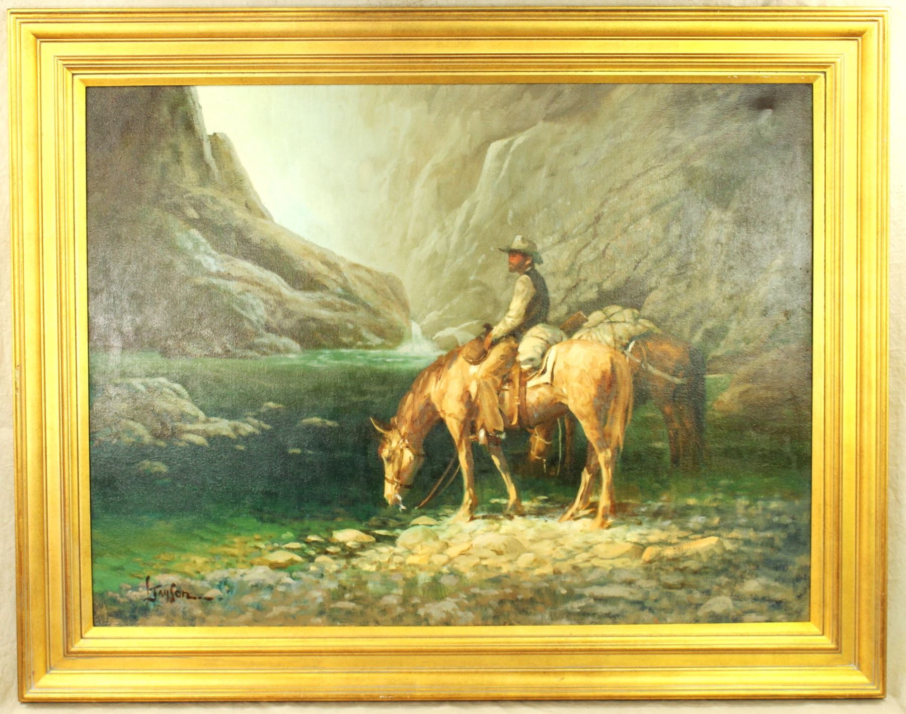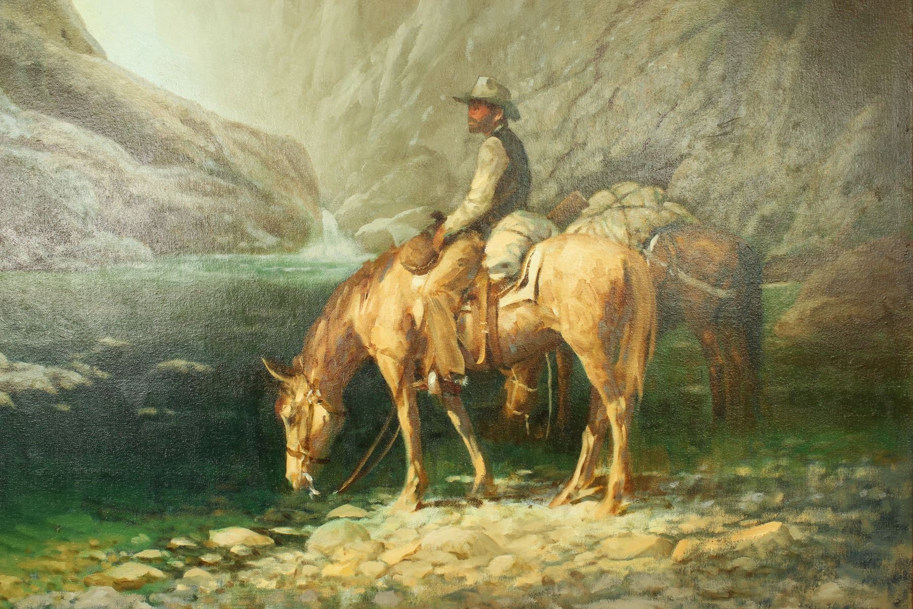 A striking western image by a highly sought after artist, that will make a great focal point of any room, sight measuring 40"x 30" and professionally framed 48"x 38".
