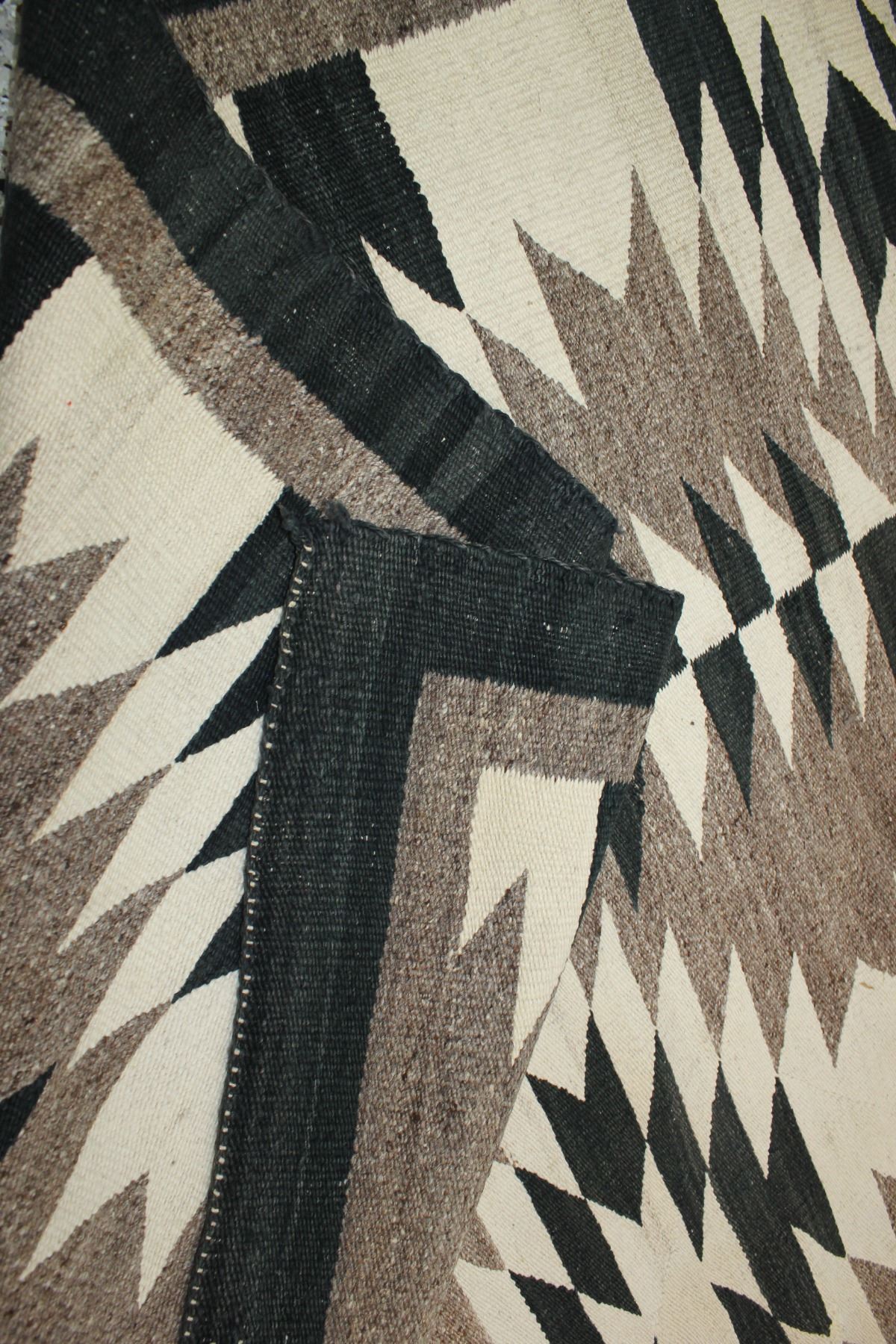 A bold black and white colored Two Grey Hills, with amazing geometrics, having dimensions of 58"x 98".