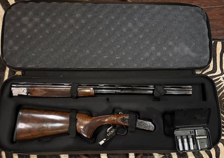 Donated by Safari Club International, for bid is a Dickinson Hunter Lux Plantation “SCI 50th Anniversary” 28-gauge double barrel shotgun (new in box, never owned or fired).