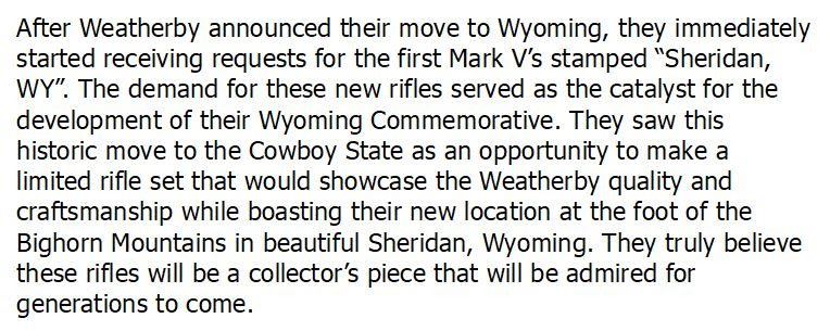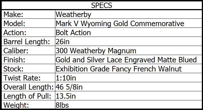 Lot 1 WEATHERBY WYOMING GOLD 300 WBY 26in 3rnd