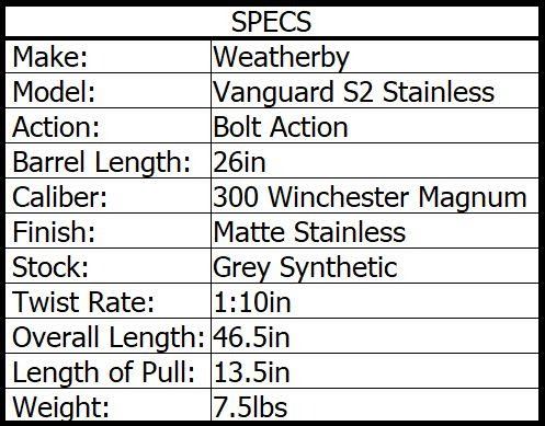 Lot 44 WEATHERBY VANGUARD S2 STAINLESS 300 WIN MAG 26in 3rnd
